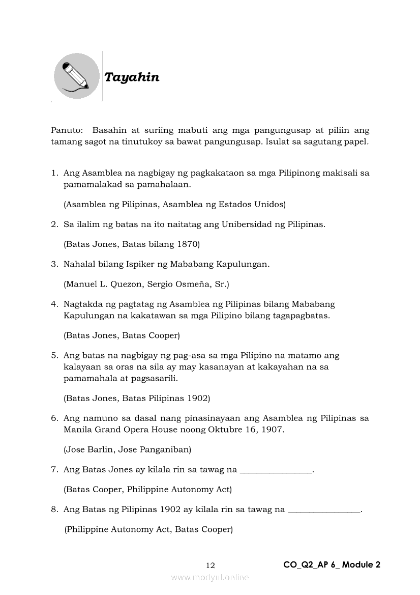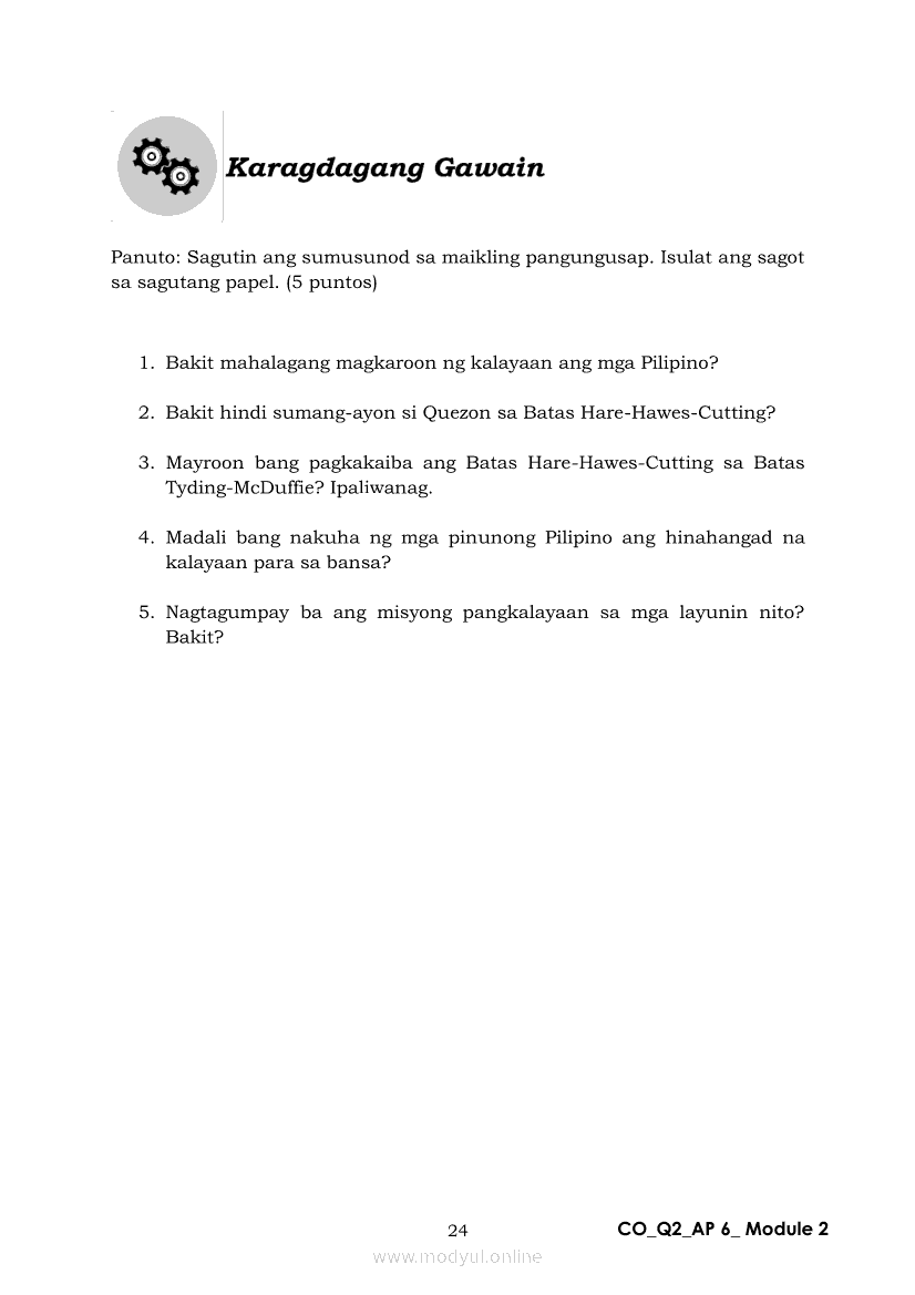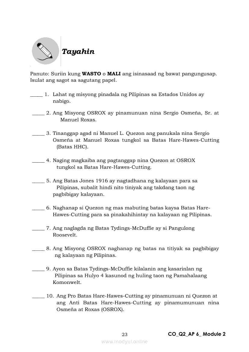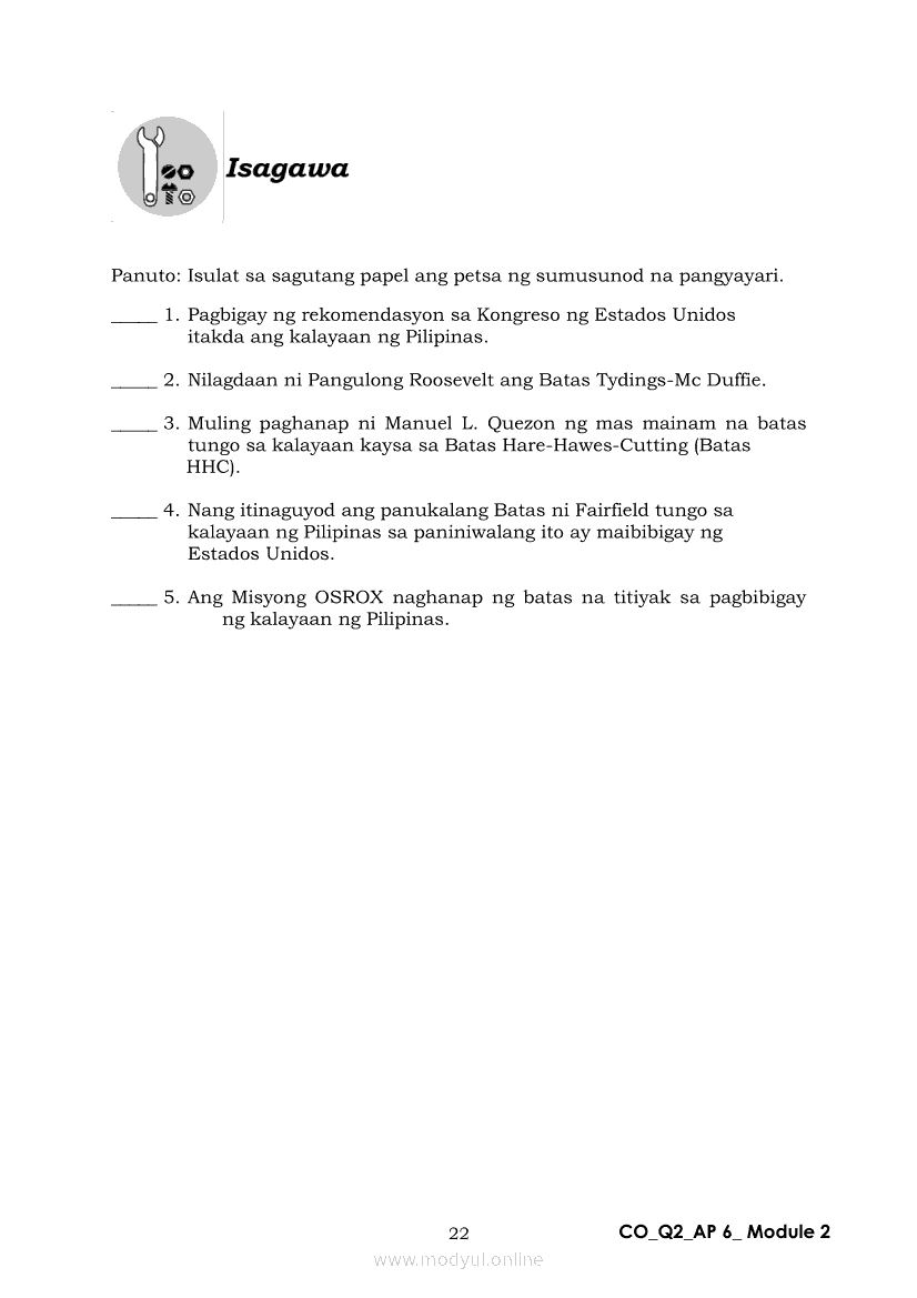 Araling Panlipunan 6 Ikalawang Markahan – Modyul 2: Ang Pagsusumikap ng mga Pilipino Tungo sa Pagtatatag ng Nagsasariling PamahalaanApr 22, 2021 Grade 6Kiumo M901 Tablet for Kids — comprehensive protection in learning, safety, and entertainment for as low as **₱2,399!. Araling Panlipunan 6RelatedAraling Panlipunan Ikaapat na Markahan – Modyul 7: Kontemporaryong Isyu ng Lipunan Tungo sa Pagtugon sa mga Hamon ng Malaya at Maunlad na BansaAraling Panlipunan Ikaapat na Markahan – Modyul 1: Mga Suliranin at Hamon sa Ilalim ng Batas MilitarAraling Panlipunan Ikaapat na Markahan – Modyul 6: Mga Pangunahing Suliranin at Hamong Kinaharap ng mga Pilipino mula 1986 hanggang sa kasalukuyanAraling Panlipunan Ikaapat na Markahan – Modyul 2: Reaksyon ng mga Pilipino sa Patakaran ng Batas MilitarAraling Panlipunan Ikaapat na Markahan – Modyul 5: Pagtatanggol at Pagpapanatili sa Demokratikong Pamamahala