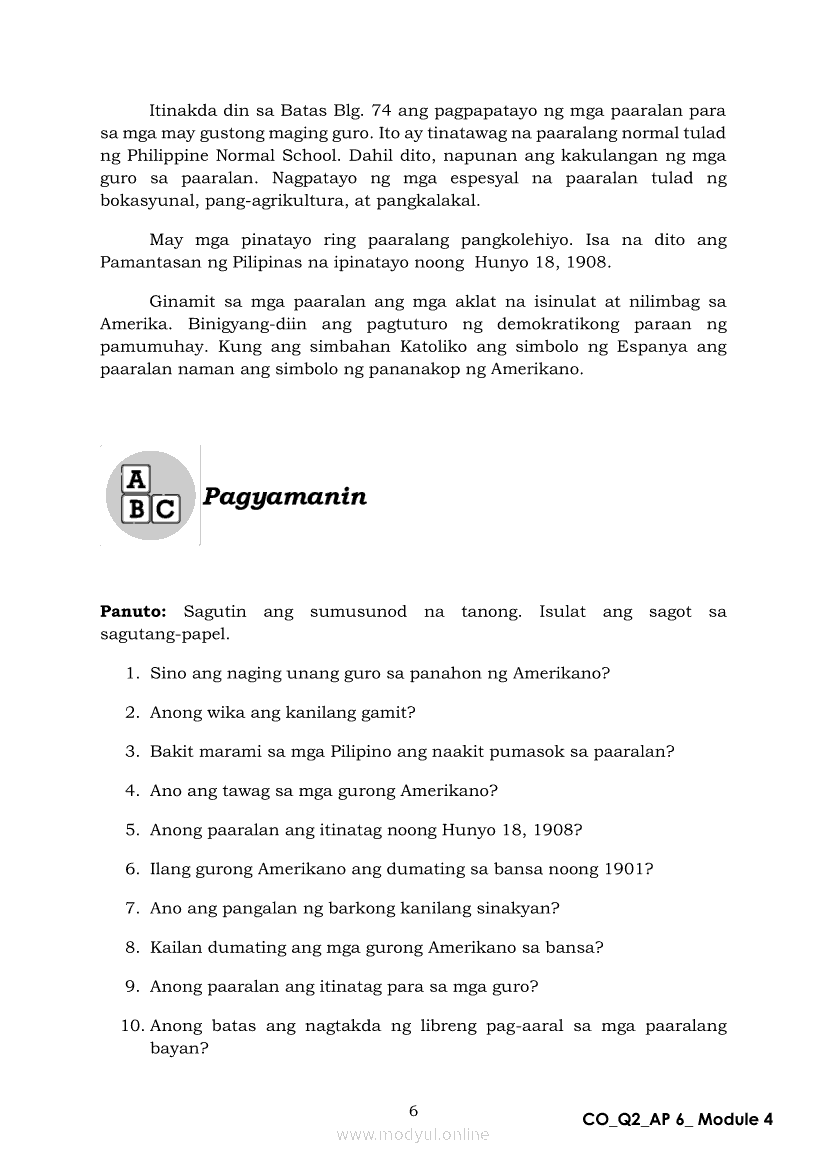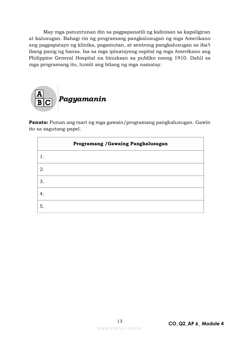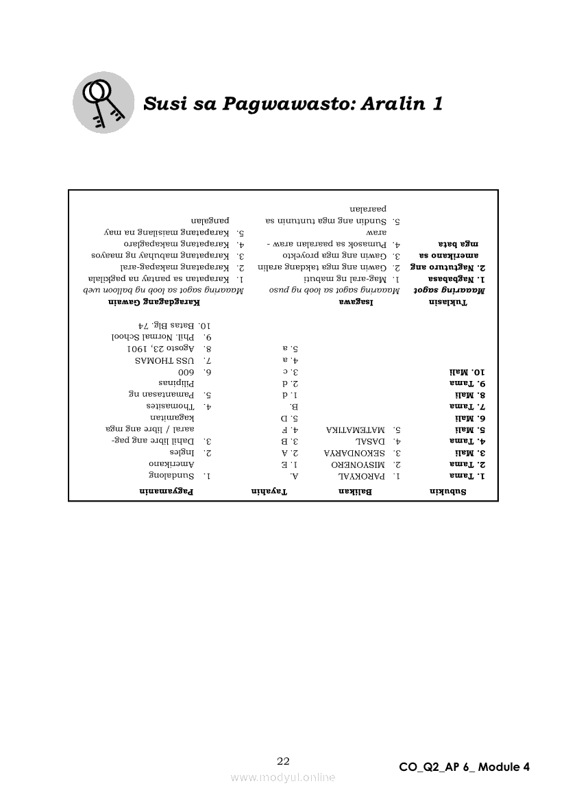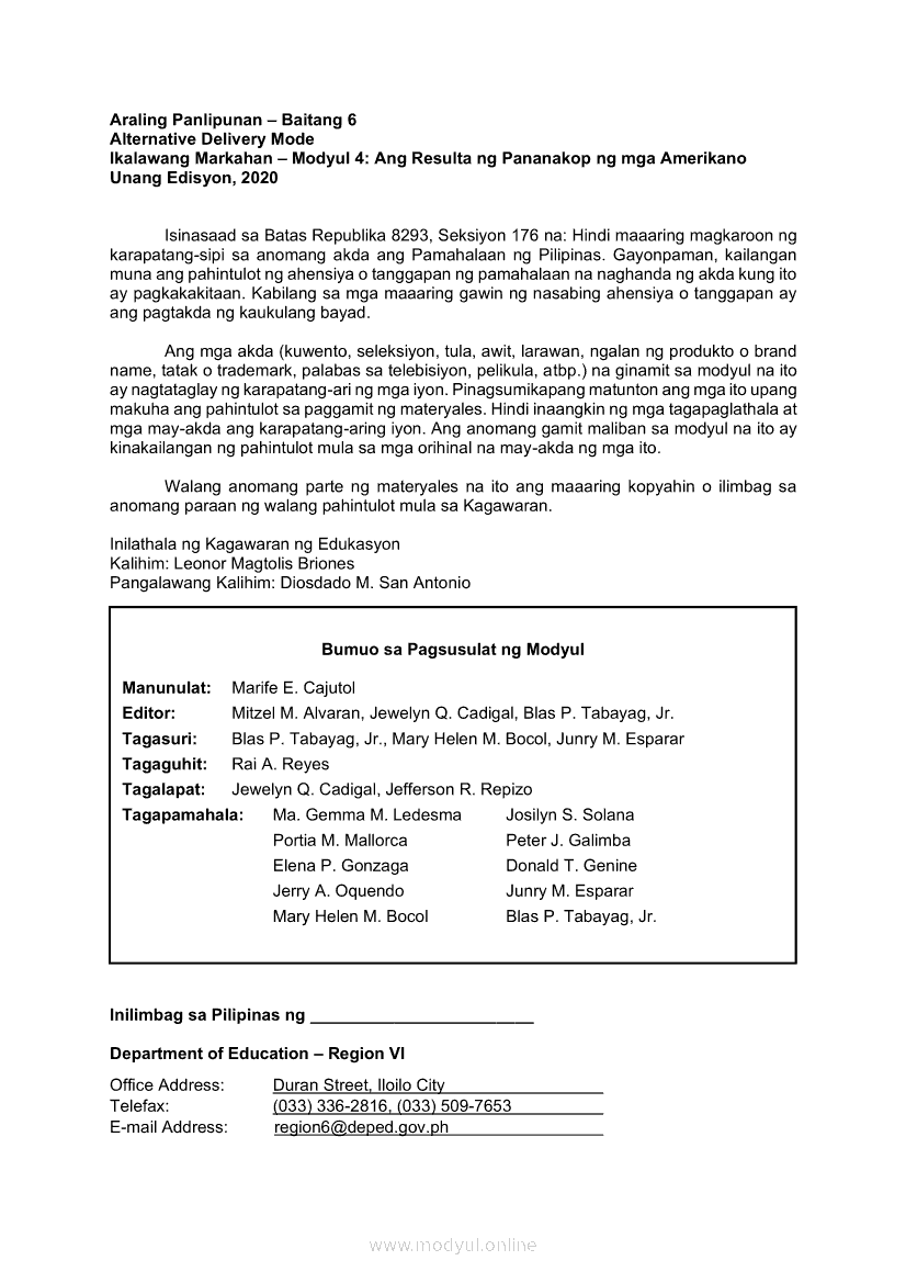 Araling Panlipunan 6 Ikalawang Markahan – Modyul 4: Ang Resulta ng Pananakop ng mga AmerikanoApr 22, 2021 Grade 6Kiumo M901 Tablet for Kids — comprehensive protection in learning, safety, and entertainment for as low as **₱2,399!. Araling Panlipunan 6RelatedAraling Panlipunan Ikaapat na Markahan – Modyul 1: Mga Suliranin at Hamon sa Ilalim ng Batas MilitarAraling Panlipunan Ikaapat na Markahan – Modyul 5: Pagtatanggol at Pagpapanatili sa Demokratikong PamamahalaAraling Panlipunan Ika-apat na Markahan – Modyul 8: Mga Gampanin ng Pamahalaan at Mamamayan sa Pagkamit ng Kaunlaran ng BansaAraling Panlipunan Ikaapat na Markahan – Modyul 3: Mga Pangyayaring Nagbigay-Daan sa People Power 1Araling Panlipunan Ikaapat na Markahan – Modyul 4: Pagtatanggol at Pagpapanatili sa Karapatang Pantao
