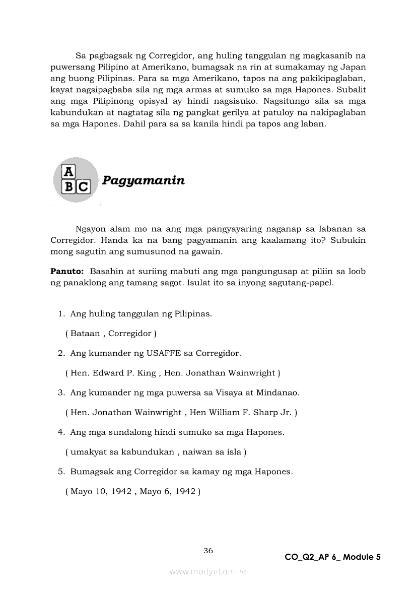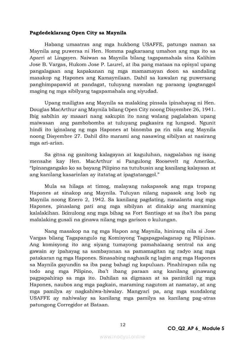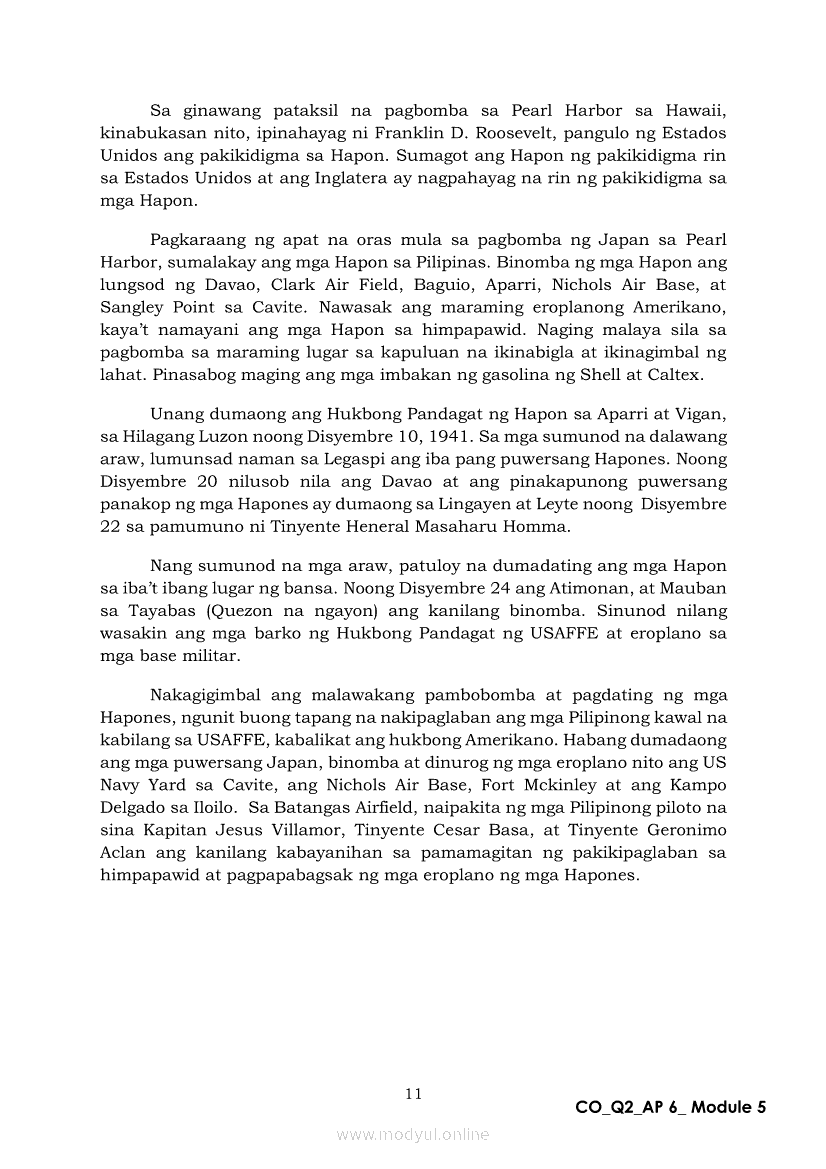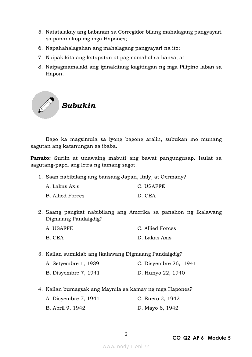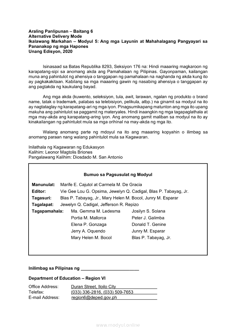Araling Panlipunan 6 Ikalawang Markahan – Modyul 5: Ang mga Layunin at Mahahalagang Pangyayari sa Pananakop ng mga HaponesApr 22, 2021 Grade 6Kiumo M901 Tablet for Kids — comprehensive protection in learning, safety, and entertainment for as low as **₱2,399!. Araling Panlipunan 6RelatedAraling Panlipunan Ika-apat na Markahan – Modyul 8: Mga Gampanin ng Pamahalaan at Mamamayan sa Pagkamit ng Kaunlaran ng BansaAraling Panlipunan Ikaapat na Markahan – Modyul 3: Mga Pangyayaring Nagbigay-Daan sa People Power 1Araling Panlipunan Ikaapat na Markahan – Modyul 7: Kontemporaryong Isyu ng Lipunan Tungo sa Pagtugon sa mga Hamon ng Malaya at Maunlad na BansaAraling Panlipunan Ikaapat na Markahan – Modyul 1: Mga Suliranin at Hamon sa Ilalim ng Batas MilitarAraling Panlipunan Ikaapat na Markahan – Modyul 2: Reaksyon ng mga Pilipino sa Patakaran ng Batas Militar