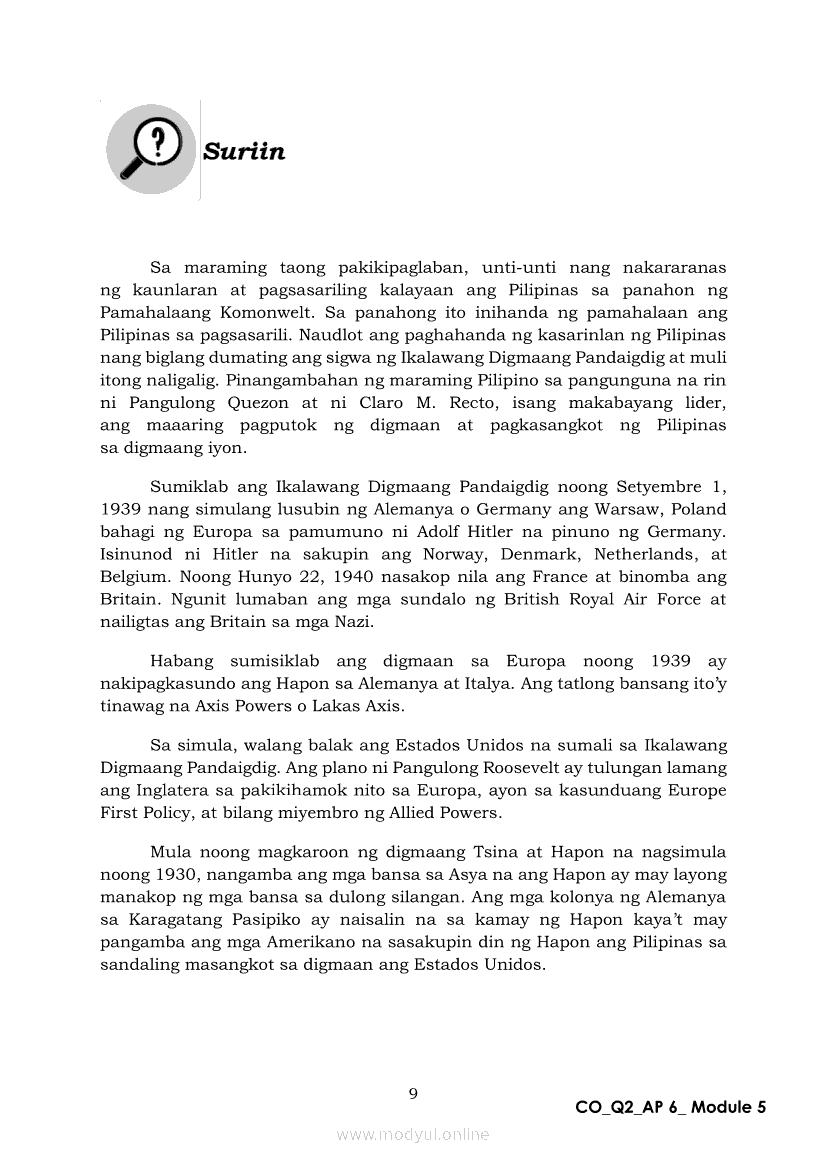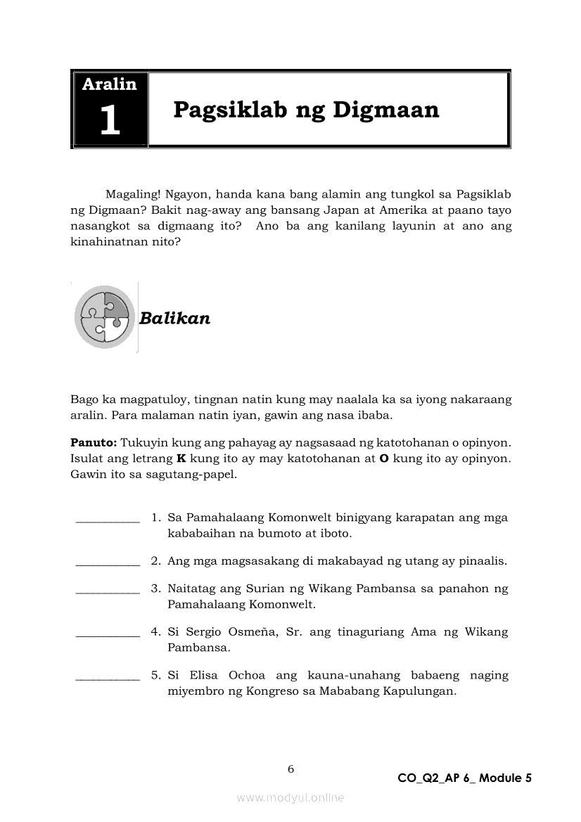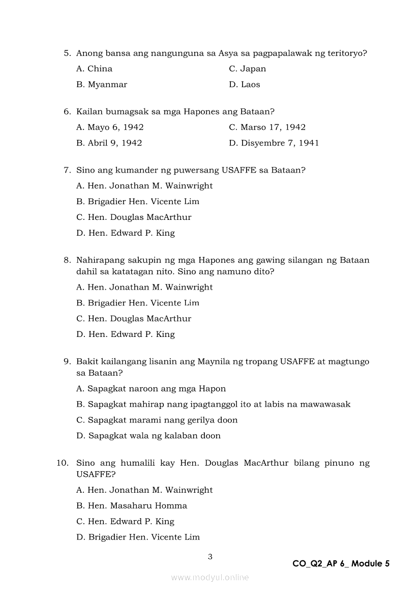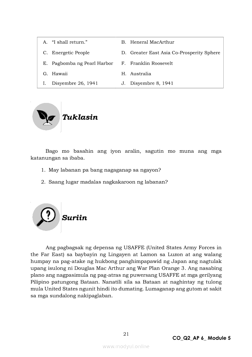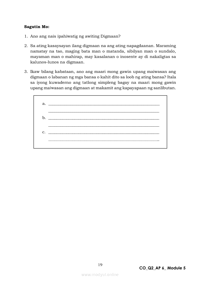 Araling Panlipunan 6 Ikalawang Markahan – Modyul 5: Ang mga Layunin at Mahahalagang Pangyayari sa Pananakop ng mga HaponesApr 22, 2021 Grade 6Kiumo M901 Tablet for Kids — comprehensive protection in learning, safety, and entertainment for as low as **₱2,399!. Araling Panlipunan 6RelatedAraling Panlipunan Ika-apat na Markahan – Modyul 8: Mga Gampanin ng Pamahalaan at Mamamayan sa Pagkamit ng Kaunlaran ng BansaAraling Panlipunan Ikaapat na Markahan – Modyul 3: Mga Pangyayaring Nagbigay-Daan sa People Power 1Araling Panlipunan Ikaapat na Markahan – Modyul 7: Kontemporaryong Isyu ng Lipunan Tungo sa Pagtugon sa mga Hamon ng Malaya at Maunlad na BansaAraling Panlipunan Ikaapat na Markahan – Modyul 1: Mga Suliranin at Hamon sa Ilalim ng Batas MilitarAraling Panlipunan Ikaapat na Markahan – Modyul 2: Reaksyon ng mga Pilipino sa Patakaran ng Batas Militar