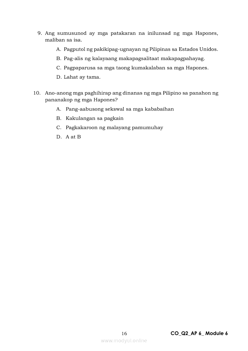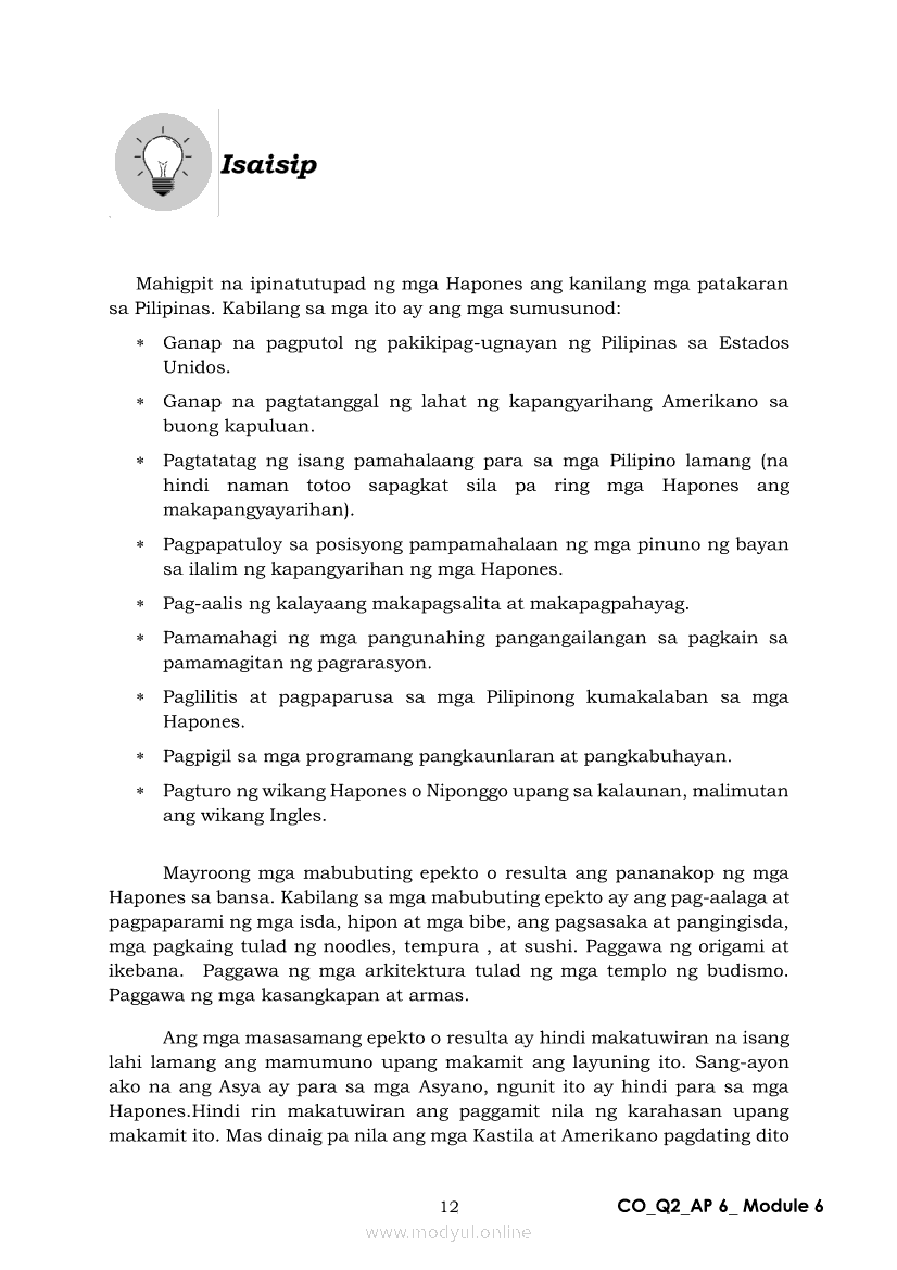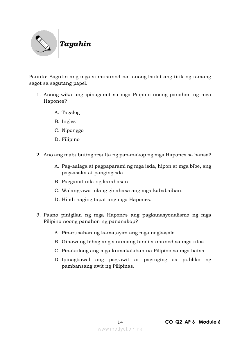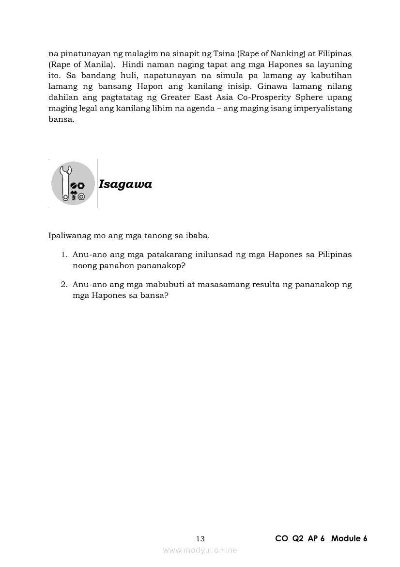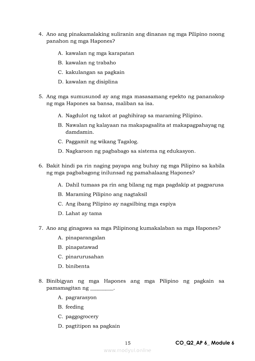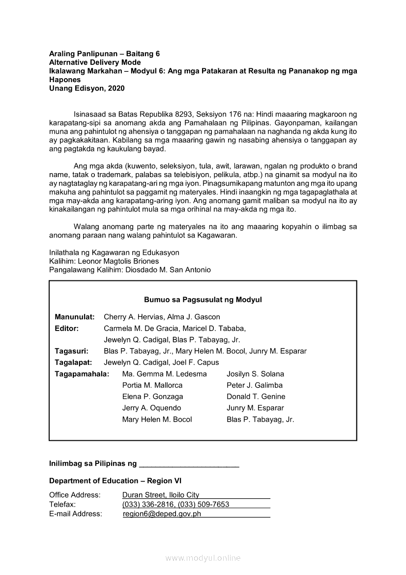 Araling Panlipunan 6 Ikalawang Markahan – Modyul 6: Ang mga Patakaran at Resulta ng Pananakop ng mga HaponesApr 22, 2021 Grade 6Kiumo M901 Tablet for Kids — comprehensive protection in learning, safety, and entertainment for as low as **₱2,399!. Araling Panlipunan 6RelatedAraling Panlipunan Ikaapat na Markahan – Modyul 5: Pagtatanggol at Pagpapanatili sa Demokratikong PamamahalaAraling Panlipunan Ikaapat na Markahan – Modyul 3: Mga Pangyayaring Nagbigay-Daan sa People Power 1Araling Panlipunan Ikaapat na Markahan – Modyul 2: Reaksyon ng mga Pilipino sa Patakaran ng Batas MilitarAraling Panlipunan Ika-apat na Markahan – Modyul 8: Mga Gampanin ng Pamahalaan at Mamamayan sa Pagkamit ng Kaunlaran ng BansaAraling Panlipunan Ikaapat na Markahan – Modyul 6: Mga Pangunahing Suliranin at Hamong Kinaharap ng mga Pilipino mula 1986 hanggang sa kasalukuyan
