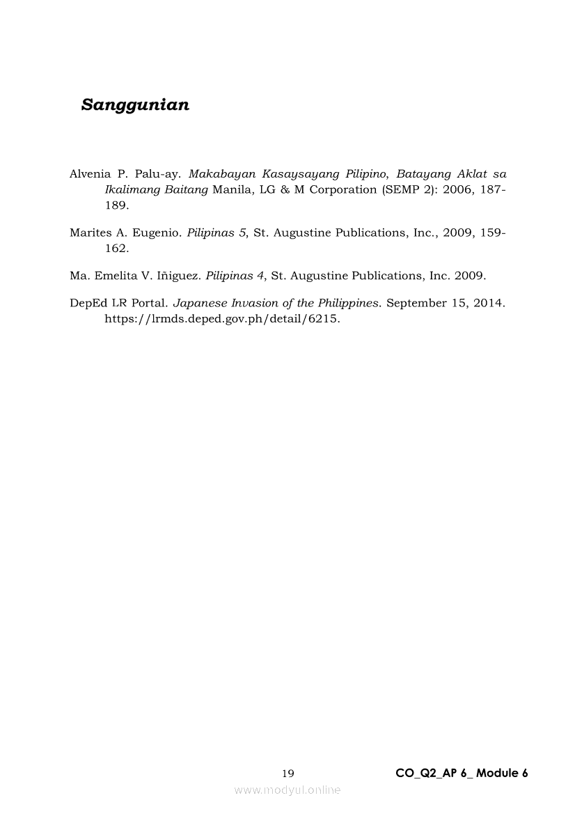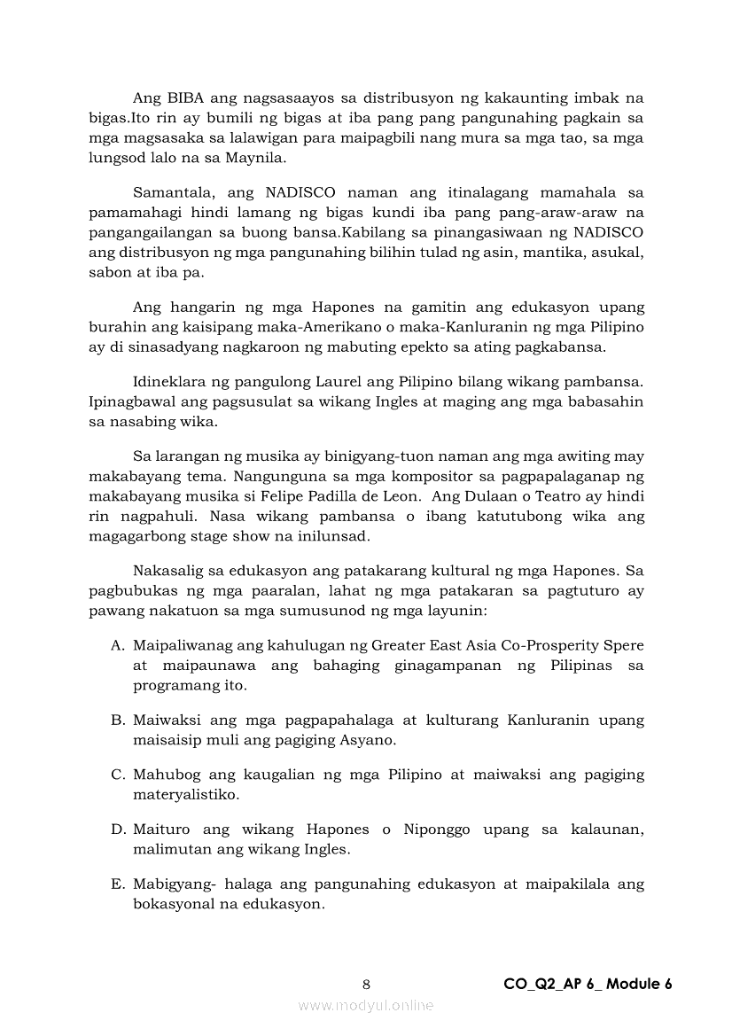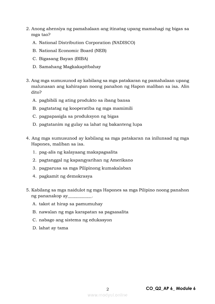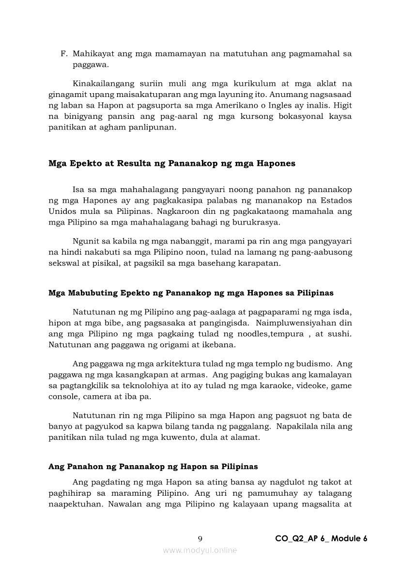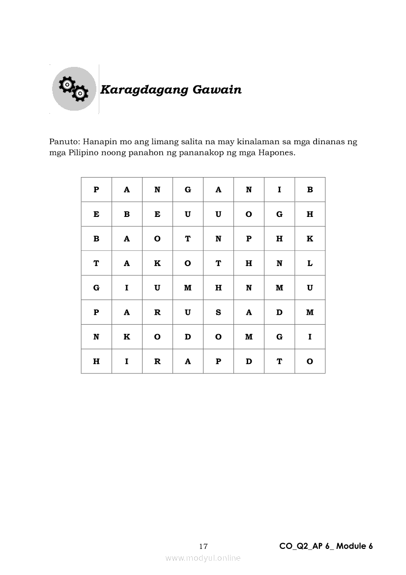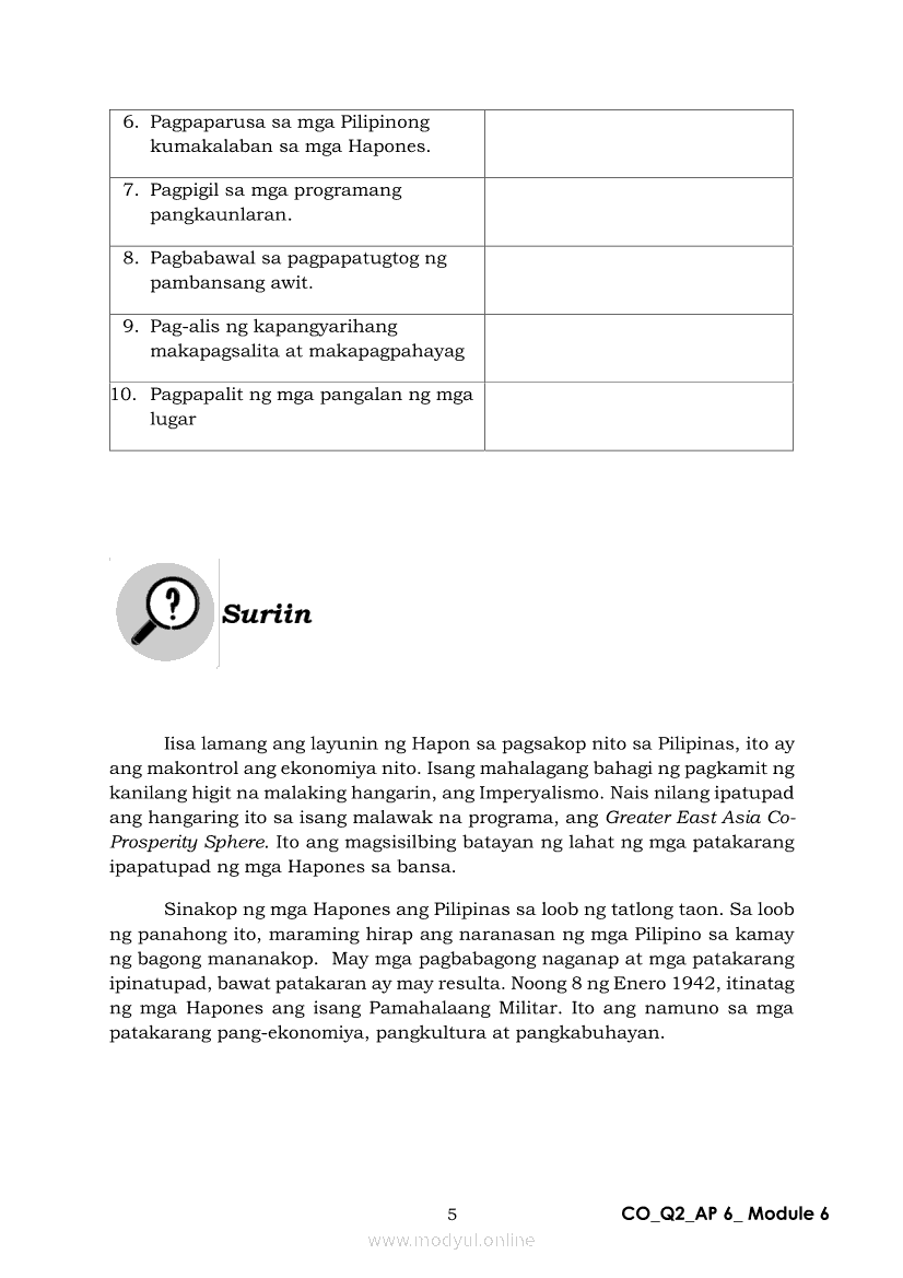 Araling Panlipunan 6 Ikalawang Markahan – Modyul 6: Ang mga Patakaran at Resulta ng Pananakop ng mga HaponesApr 22, 2021 Grade 6Kiumo M901 Tablet for Kids — comprehensive protection in learning, safety, and entertainment for as low as **₱2,399!. Araling Panlipunan 6RelatedAraling Panlipunan Ikaapat na Markahan – Modyul 5: Pagtatanggol at Pagpapanatili sa Demokratikong PamamahalaAraling Panlipunan Ikaapat na Markahan – Modyul 3: Mga Pangyayaring Nagbigay-Daan sa People Power 1Araling Panlipunan Ikaapat na Markahan – Modyul 2: Reaksyon ng mga Pilipino sa Patakaran ng Batas MilitarAraling Panlipunan Ika-apat na Markahan – Modyul 8: Mga Gampanin ng Pamahalaan at Mamamayan sa Pagkamit ng Kaunlaran ng BansaAraling Panlipunan Ikaapat na Markahan – Modyul 6: Mga Pangunahing Suliranin at Hamong Kinaharap ng mga Pilipino mula 1986 hanggang sa kasalukuyan