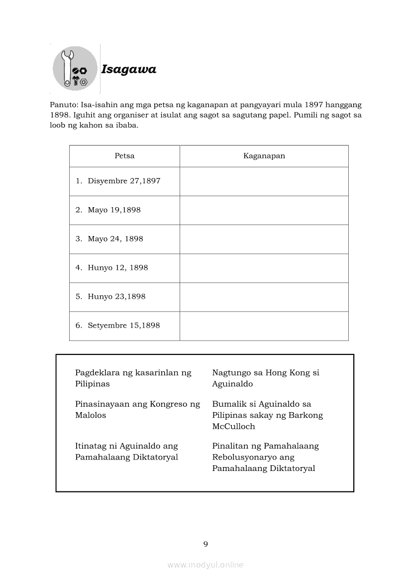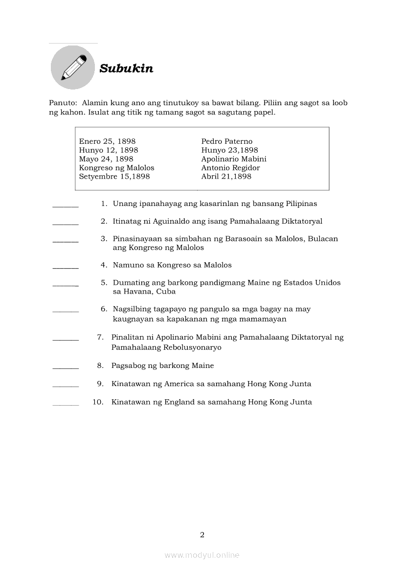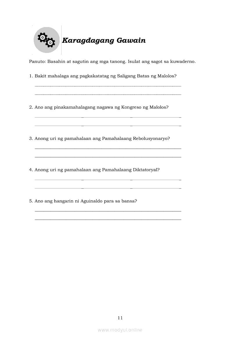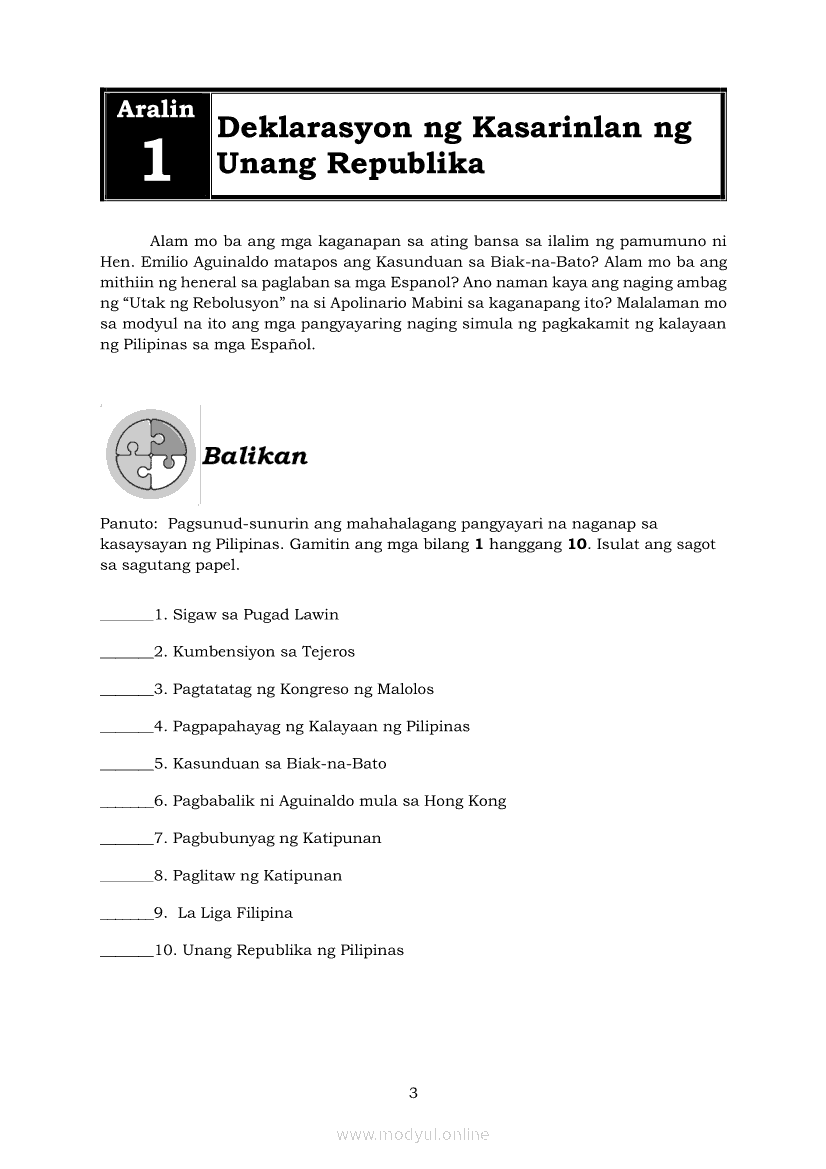 Araling Panlipunan 6 Modyul 5: Ang Deklarasyon ng Kasarinlan at Pagtatatag ng Unang RepublikaApr 22, 2021 Grade 6Kiumo M901 Tablet for Kids — comprehensive protection in learning, safety, and entertainment for as low as **₱2,399!. Araling Panlipunan 6RelatedAraling Panlipunan Ika-apat na Markahan – Modyul 8: Mga Gampanin ng Pamahalaan at Mamamayan sa Pagkamit ng Kaunlaran ng BansaAraling Panlipunan Ikaapat na Markahan – Modyul 3: Mga Pangyayaring Nagbigay-Daan sa People Power 1Araling Panlipunan Ikaapat na Markahan – Modyul 5: Pagtatanggol at Pagpapanatili sa Demokratikong PamamahalaAraling Panlipunan Ikaapat na Markahan – Modyul 6: Mga Pangunahing Suliranin at Hamong Kinaharap ng mga Pilipino mula 1986 hanggang sa kasalukuyanAraling Panlipunan Ikaapat na Markahan – Modyul 4: Pagtatanggol at Pagpapanatili sa Karapatang Pantao