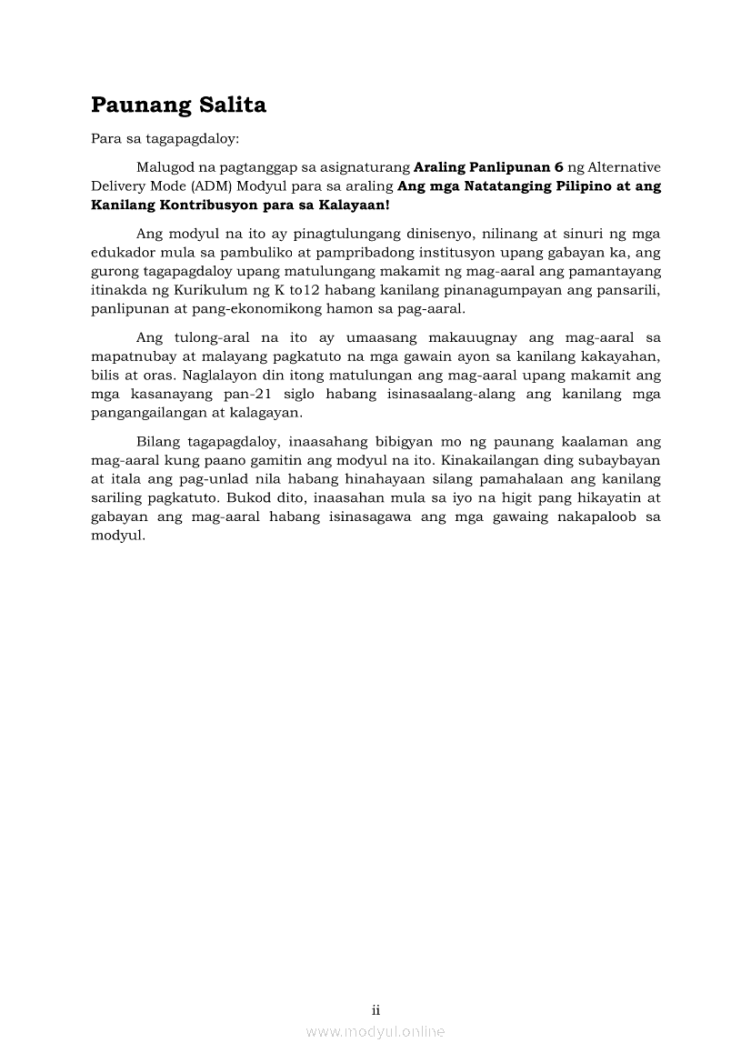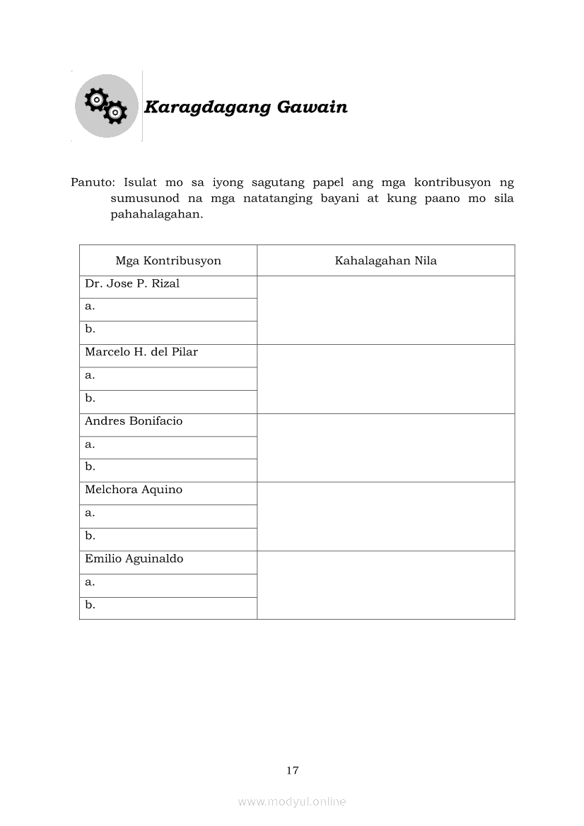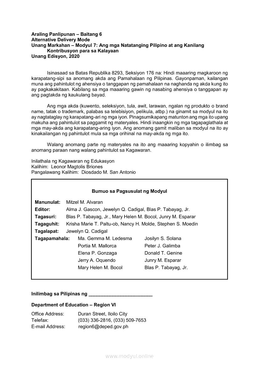 Araling Panlipunan 6 Modyul 7: Ang mga Natatanging Pilipino at ang Kanilang Kontribusyon para sa KalayaanApr 22, 2021 Grade 6Kiumo M901 Tablet for Kids — comprehensive protection in learning, safety, and entertainment for as low as **₱2,399!. Araling Panlipunan 6RelatedAraling Panlipunan Ikaapat na Markahan – Modyul 1: Mga Suliranin at Hamon sa Ilalim ng Batas MilitarAraling Panlipunan Ikaapat na Markahan – Modyul 4: Pagtatanggol at Pagpapanatili sa Karapatang PantaoAraling Panlipunan Ikaapat na Markahan – Modyul 2: Reaksyon ng mga Pilipino sa Patakaran ng Batas MilitarAraling Panlipunan Ikaapat na Markahan – Modyul 7: Kontemporaryong Isyu ng Lipunan Tungo sa Pagtugon sa mga Hamon ng Malaya at Maunlad na BansaAraling Panlipunan Ikaapat na Markahan – Modyul 6: Mga Pangunahing Suliranin at Hamong Kinaharap ng mga Pilipino mula 1986 hanggang sa kasalukuyan
