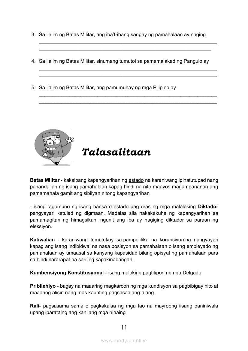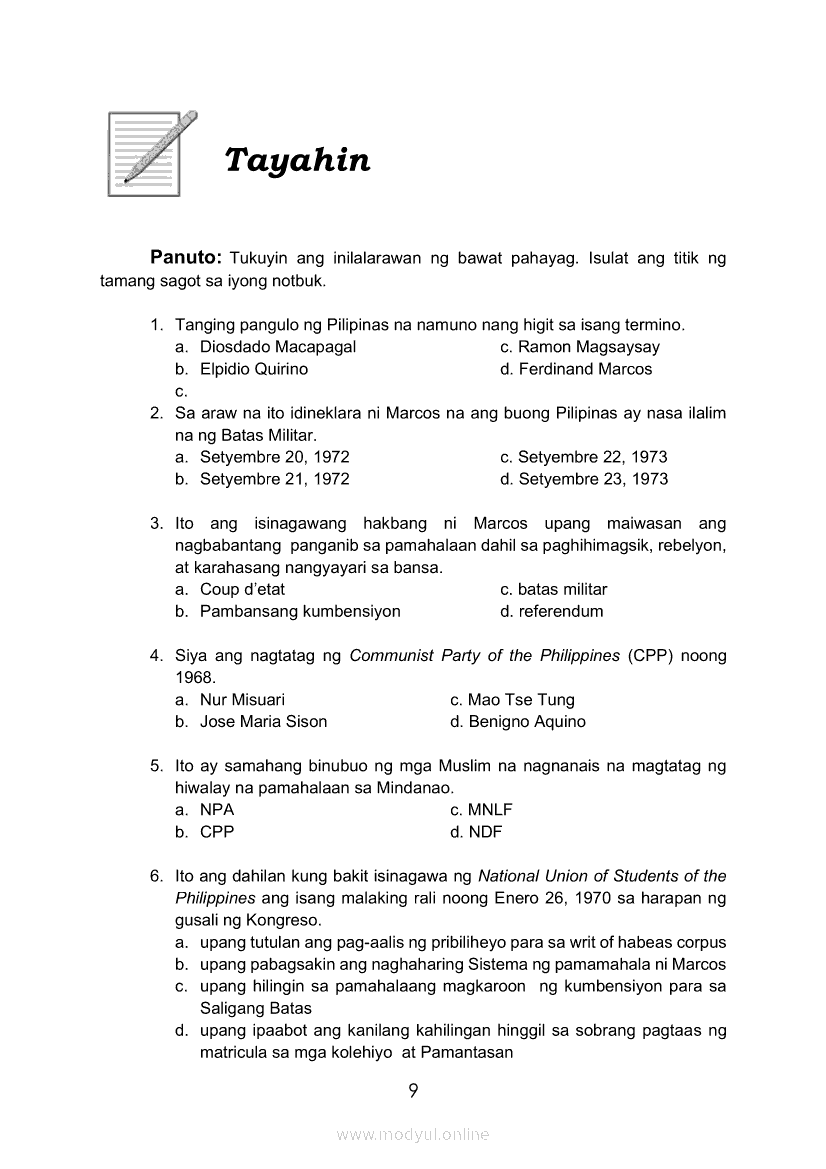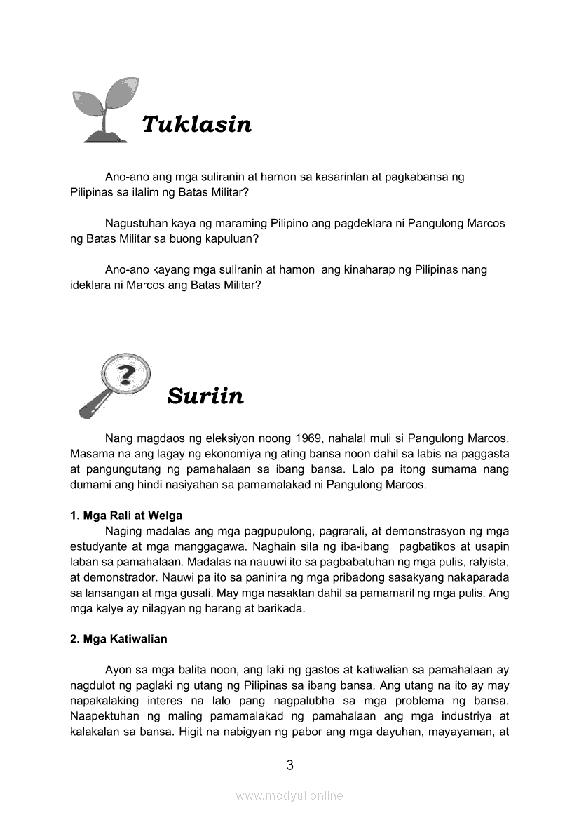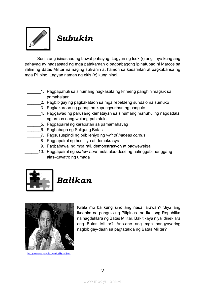 Araling Panlipunan Ikaapat na Markahan – Modyul 1: Mga Suliranin at Hamon sa Ilalim ng Batas MilitarMay 27, 2021 Grade 6Kiumo M901 Tablet for Kids — comprehensive protection in learning, safety, and entertainment for as low as **₱2,399!. Araling Panlipunan 6 4th QuarterRelatedAraling Panlipunan Ikaapat na Markahan – Modyul 6: Mga Pangunahing Suliranin at Hamong Kinaharap ng mga Pilipino mula 1986 hanggang sa kasalukuyanAraling Panlipunan Ikaapat na Markahan – Modyul 7: Kontemporaryong Isyu ng Lipunan Tungo sa Pagtugon sa mga Hamon ng Malaya at Maunlad na BansaAraling Panlipunan Ika-apat na Markahan – Modyul 8: Mga Gampanin ng Pamahalaan at Mamamayan sa Pagkamit ng Kaunlaran ng BansaAraling Panlipunan Ikaapat na Markahan – Modyul 2: Reaksyon ng mga Pilipino sa Patakaran ng Batas MilitarAraling Panlipunan Ikaapat na Markahan – Modyul 4: Pagtatanggol at Pagpapanatili sa Karapatang Pantao