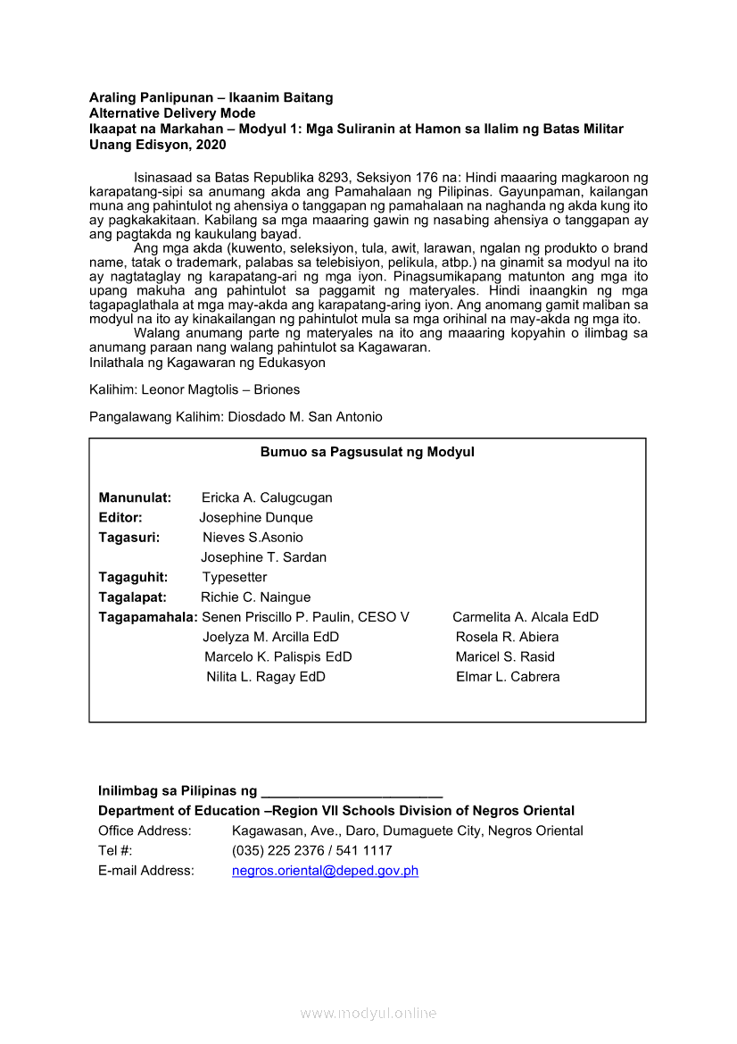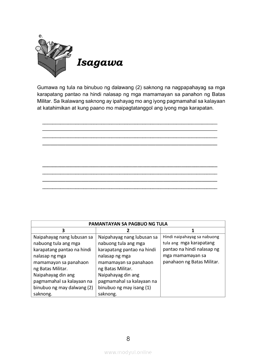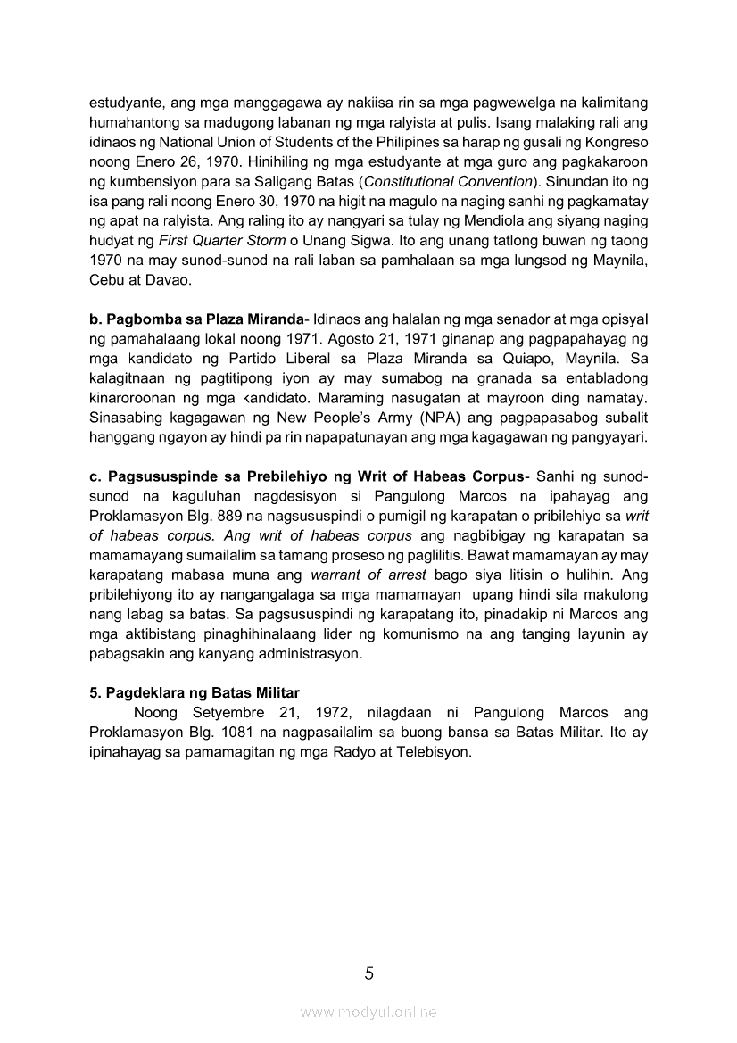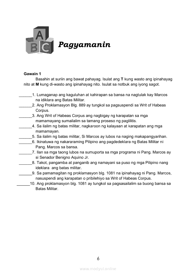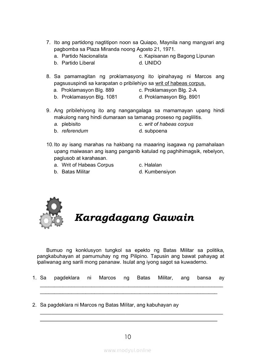 Araling Panlipunan Ikaapat na Markahan – Modyul 1: Mga Suliranin at Hamon sa Ilalim ng Batas MilitarMay 27, 2021 Grade 6Kiumo M901 Tablet for Kids — comprehensive protection in learning, safety, and entertainment for as low as **₱2,399!. Araling Panlipunan 6 4th QuarterRelatedAraling Panlipunan Ikaapat na Markahan – Modyul 6: Mga Pangunahing Suliranin at Hamong Kinaharap ng mga Pilipino mula 1986 hanggang sa kasalukuyanAraling Panlipunan Ikaapat na Markahan – Modyul 7: Kontemporaryong Isyu ng Lipunan Tungo sa Pagtugon sa mga Hamon ng Malaya at Maunlad na BansaAraling Panlipunan Ika-apat na Markahan – Modyul 8: Mga Gampanin ng Pamahalaan at Mamamayan sa Pagkamit ng Kaunlaran ng BansaAraling Panlipunan Ikaapat na Markahan – Modyul 2: Reaksyon ng mga Pilipino sa Patakaran ng Batas MilitarAraling Panlipunan Ikaapat na Markahan – Modyul 4: Pagtatanggol at Pagpapanatili sa Karapatang Pantao