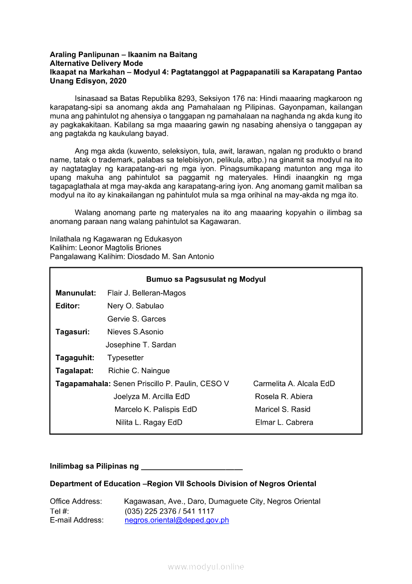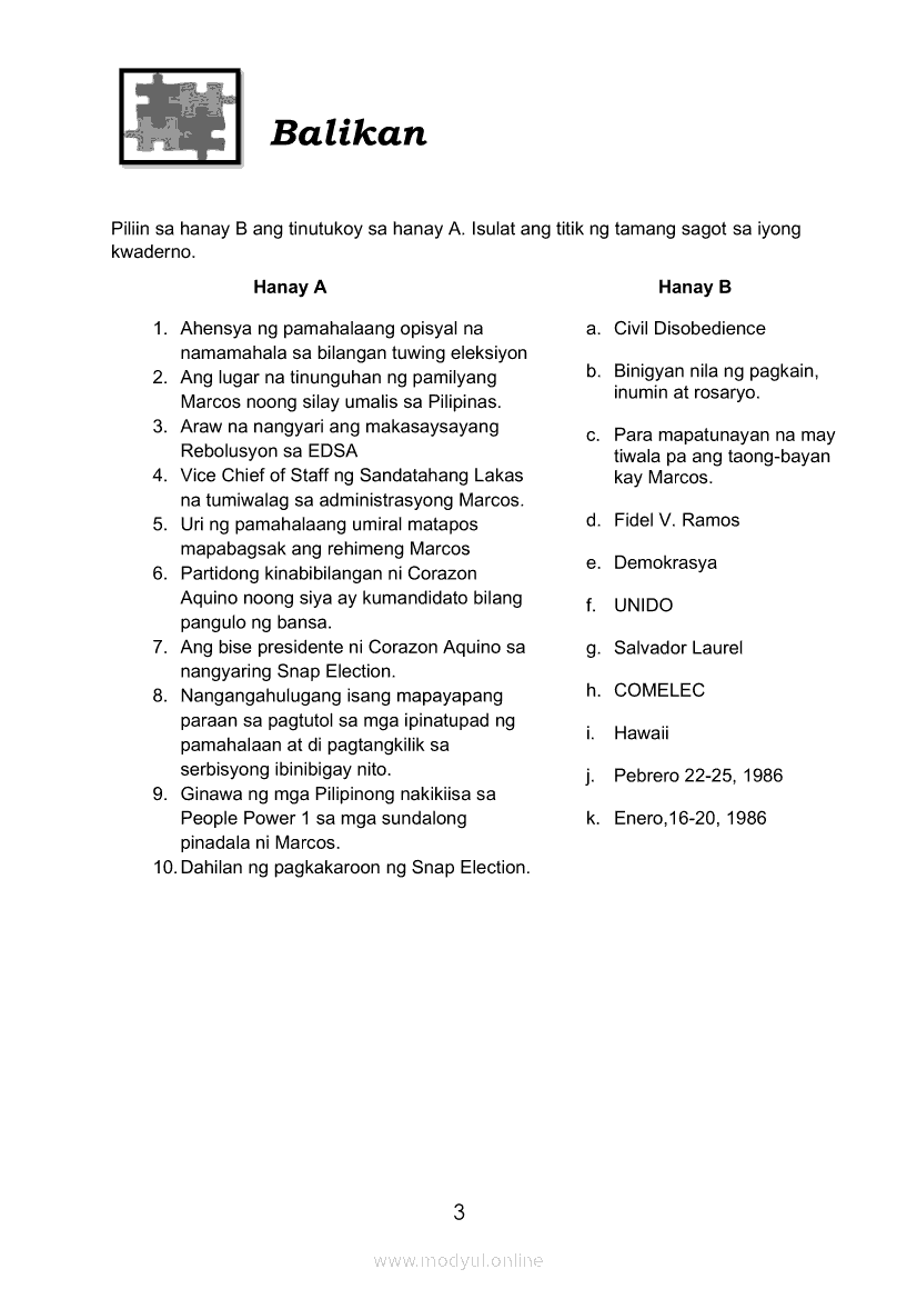 Araling Panlipunan Ikaapat na Markahan – Modyul 4: Pagtatanggol at Pagpapanatili sa Karapatang PantaoMay 27, 2021 Grade 6Kiumo M901 Tablet for Kids — comprehensive protection in learning, safety, and entertainment for as low as **₱2,399!. Araling Panlipunan 6 4th QuarterRelatedAraling Panlipunan Ikaapat na Markahan – Modyul 5: Pagtatanggol at Pagpapanatili sa Demokratikong PamamahalaAraling Panlipunan Ikaapat na Markahan – Modyul 2: Reaksyon ng mga Pilipino sa Patakaran ng Batas MilitarAraling Panlipunan Ika-apat na Markahan – Modyul 8: Mga Gampanin ng Pamahalaan at Mamamayan sa Pagkamit ng Kaunlaran ng BansaAraling Panlipunan Ikaapat na Markahan – Modyul 6: Mga Pangunahing Suliranin at Hamong Kinaharap ng mga Pilipino mula 1986 hanggang sa kasalukuyanAraling Panlipunan Ikaapat na Markahan – Modyul 1: Mga Suliranin at Hamon sa Ilalim ng Batas Militar