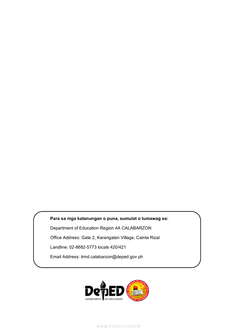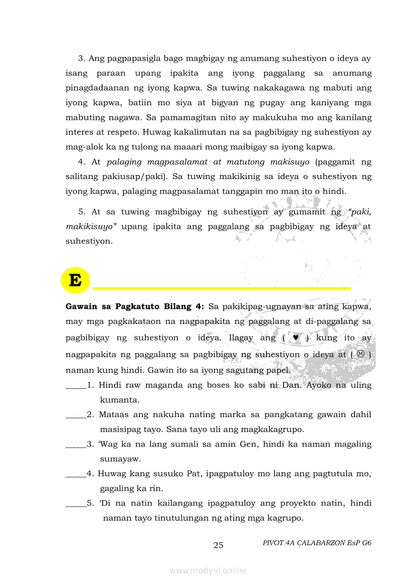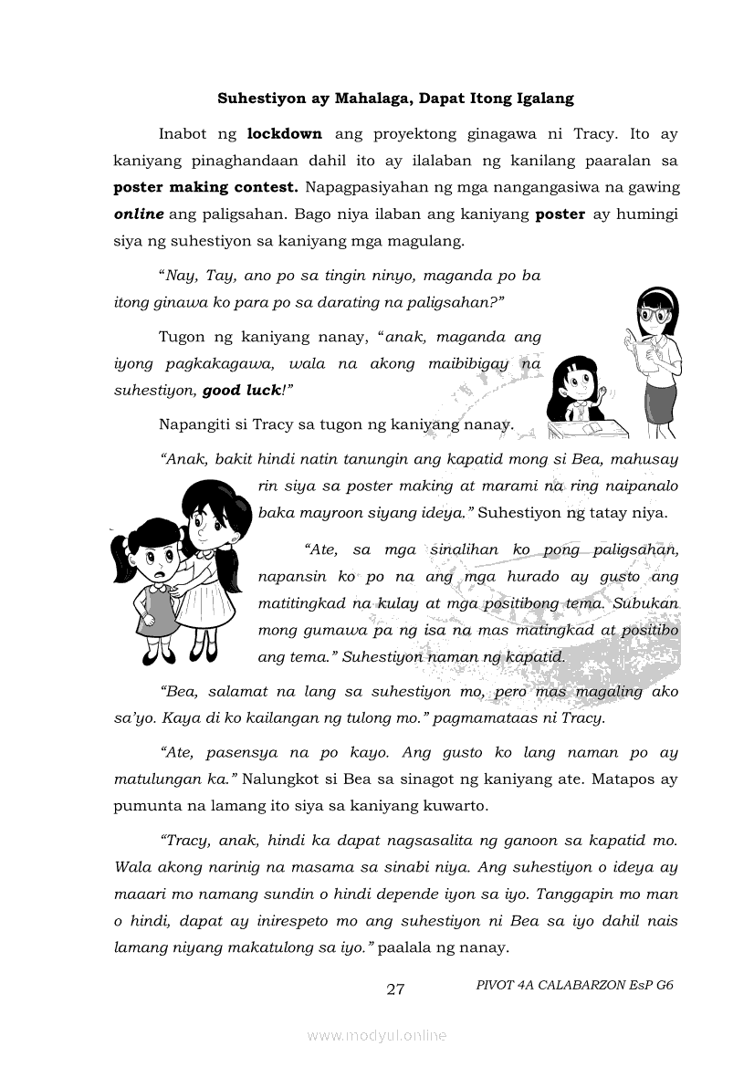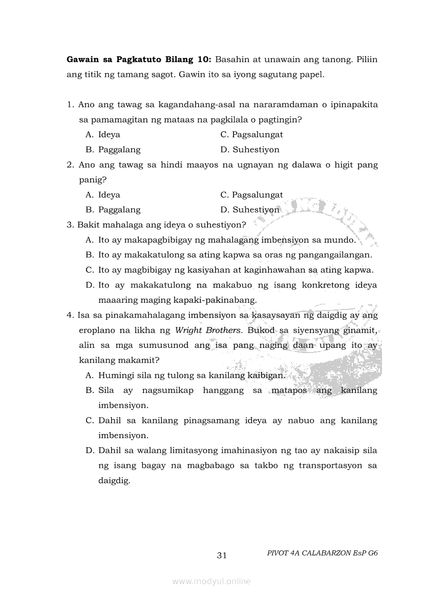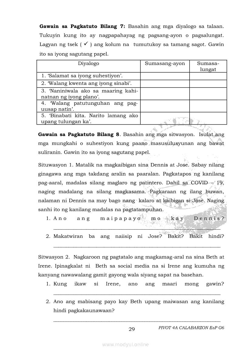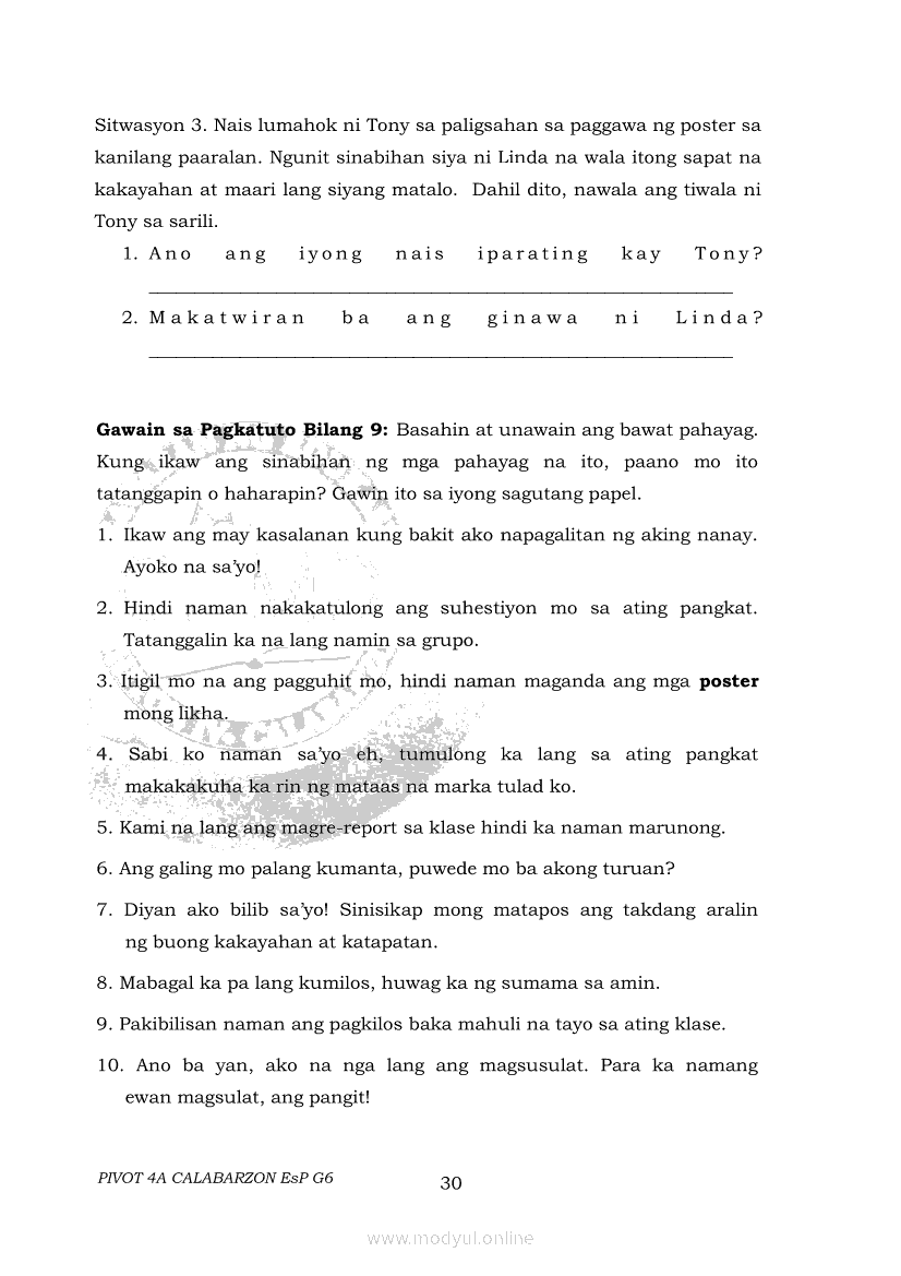 Edukasyon sa Pagpapakatao 6 Modyul para sa Ikalawang Markahan (PIVOT)Apr 22, 2021 Grade 6Kiumo M901 Tablet for Kids — comprehensive protection in learning, safety, and entertainment for as low as **₱2,399!. Edukasyon sa Pagpapakatao 6RelatedEdukasyon sa Pagpapakatao Ikaapat na Markahan – Modyul 8: Pananalig at Pag-asaEdukasyon sa Pagpapakatao Ikaapat na Markahan – Modyul 2: Manalig sa DiyosEdukasyon sa Pagpapakatao Ikaapat na Markahan – Modyul 3 Pagpapaunlad ng Pagkatao sa Pamamagitan ng IspiritwalidadEdukasyon sa Pagpapakatao Ikaapat na Markahan – Modyul 7: Positibong Pananaw sa BuhayEdukasyon sa Pagpapakatao Ikaapat na Markahan – Modyul 5: Pananampalataya sa Diyos