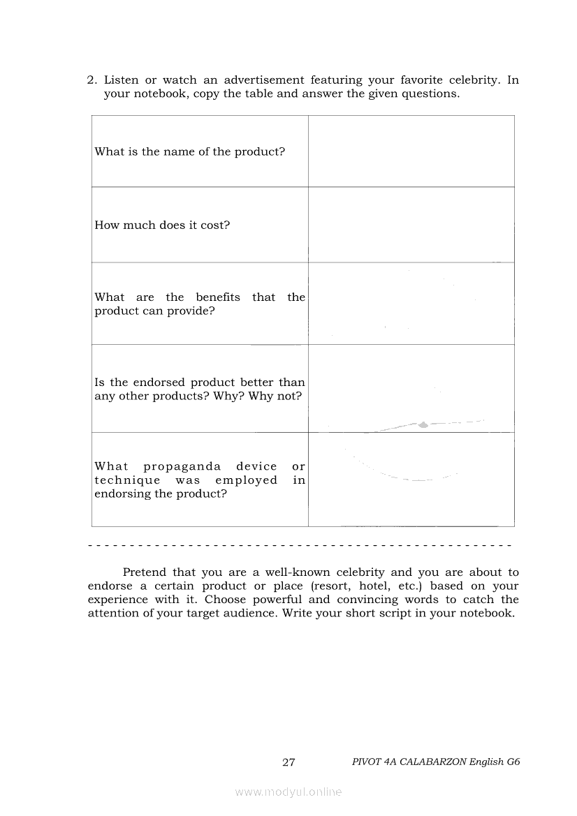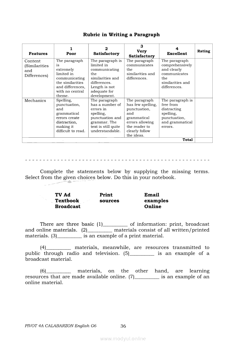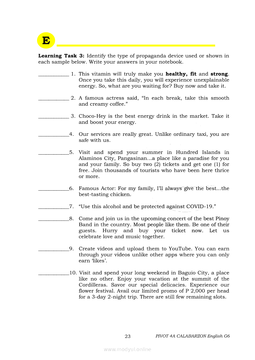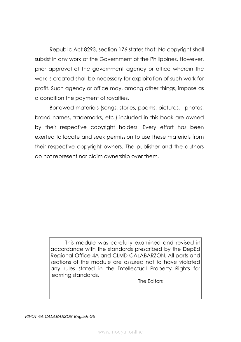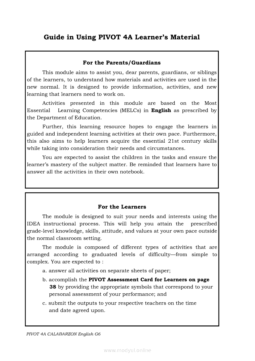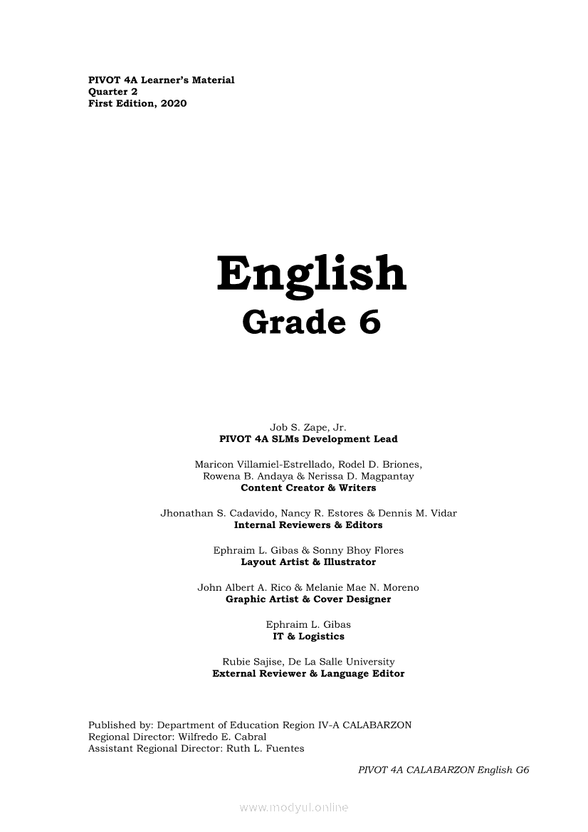 English 6 Second Quarter Module (PIVOT)Apr 22, 2021 Grade 6Kiumo M901 Tablet for Kids — comprehensive protection in learning, safety, and entertainment for as low as **₱2,399!. English 6RelatedEnglish Quarter 4 – Module 1.1a: Compose Clear and Coherent Sentences Using Appropriate Grammatical Structures (Verb Tenses): Simple Tenses of VerbsEnglish Quarter 4 – Module: 2 Compose a Persuasive Essay on Self-selected TopicEnglish Quarter 4 – Module 1.1b: Compose Clear and Coherent Sentences Using Appropriate Grammatical Structures (Verb Tenses: Perfect Tenses of VerbsEnglish 6 Module 3: Connecting LivesEnglish 6 English Module