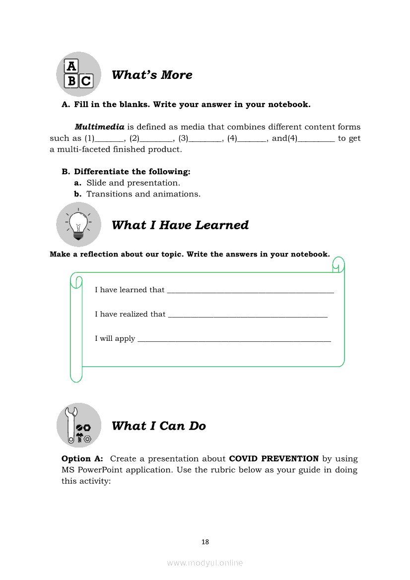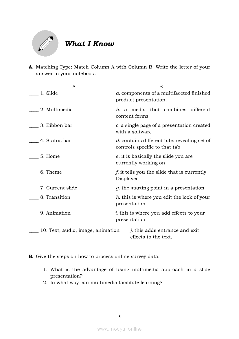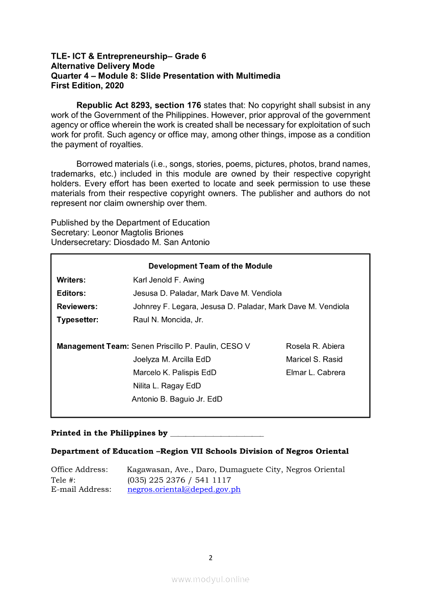 EPP- ICT Quarter 4- Module 8: Slide Presentation with Multimedia (Using Slide Presentation with Multimedia)May 27, 2021 Grade 6Kiumo M901 Tablet for Kids — comprehensive protection in learning, safety, and entertainment for as low as **₱2,399!. EPP 6 4th QuarterRelatedEPP ICT Quarter 4 – Module 1: Sells Products Based on Needs and DemandsEPP - ICT Quarter 4 – Module 3: Posts and Shares Materials on Blog in Responsible MannerEPP- ICT Quarter 4 – Module 2: Posts and Shares Materials on Wiki in Responsible MannerEPP ICT Quarter 4 – Module 4: Participates in Video and Audio Conferences in Safe and Responsible MannersAraling Panlipunan Ika-apat na Markahan – Modyul 8: Mga Gampanin ng Pamahalaan at Mamamayan sa Pagkamit ng Kaunlaran ng Bansa