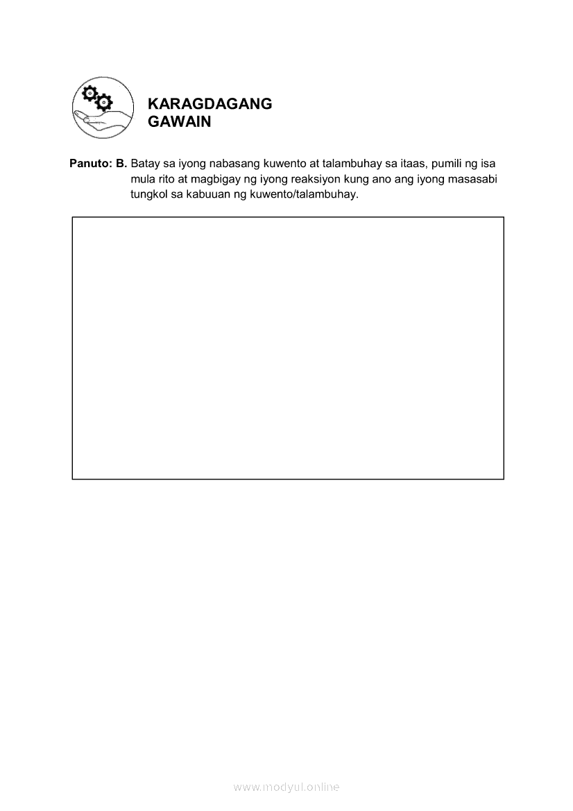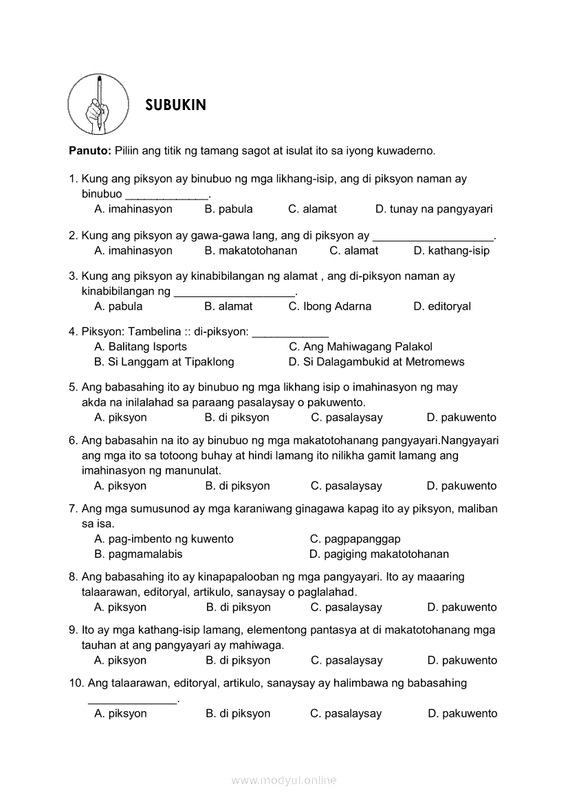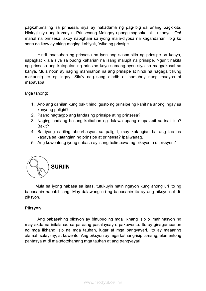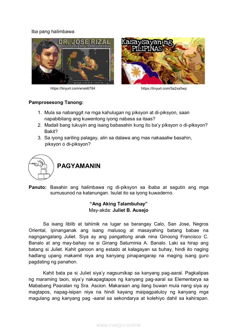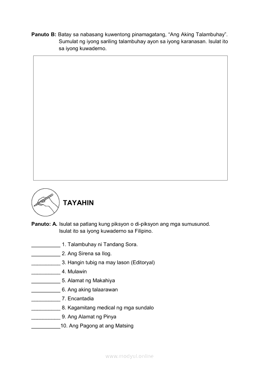 Filipino 6 Ikaapat na Markahan – Modyul 3: Ang Pagkakaiba ng Kathang Isip at Di-Kathang Isip na Teksto (Fiction and Non-Fiction)May 27, 2021 Grade 6Kiumo M901 Tablet for Kids — comprehensive protection in learning, safety, and entertainment for as low as **₱2,399!. Filipino 6 4th QuarterRelatedFilipino 6 Ikaapat na Markahan – Modyul 4: Uri ng PelikulaFilipino 6 Ika-apat na Markahan – Modyul 2: Salitang MagkakaugnayFilipino 6 Ikaapat na Markahan – Modyul 1: Paggamit ng Pangngalan sa PatalastasEdukasyon sa Pagpapakatao Ikaapat na Markahan – Modyul 8: Pananalig at Pag-asaEPP- ICT Quarter 4 – Module 2: Posts and Shares Materials on Wiki in Responsible Manner