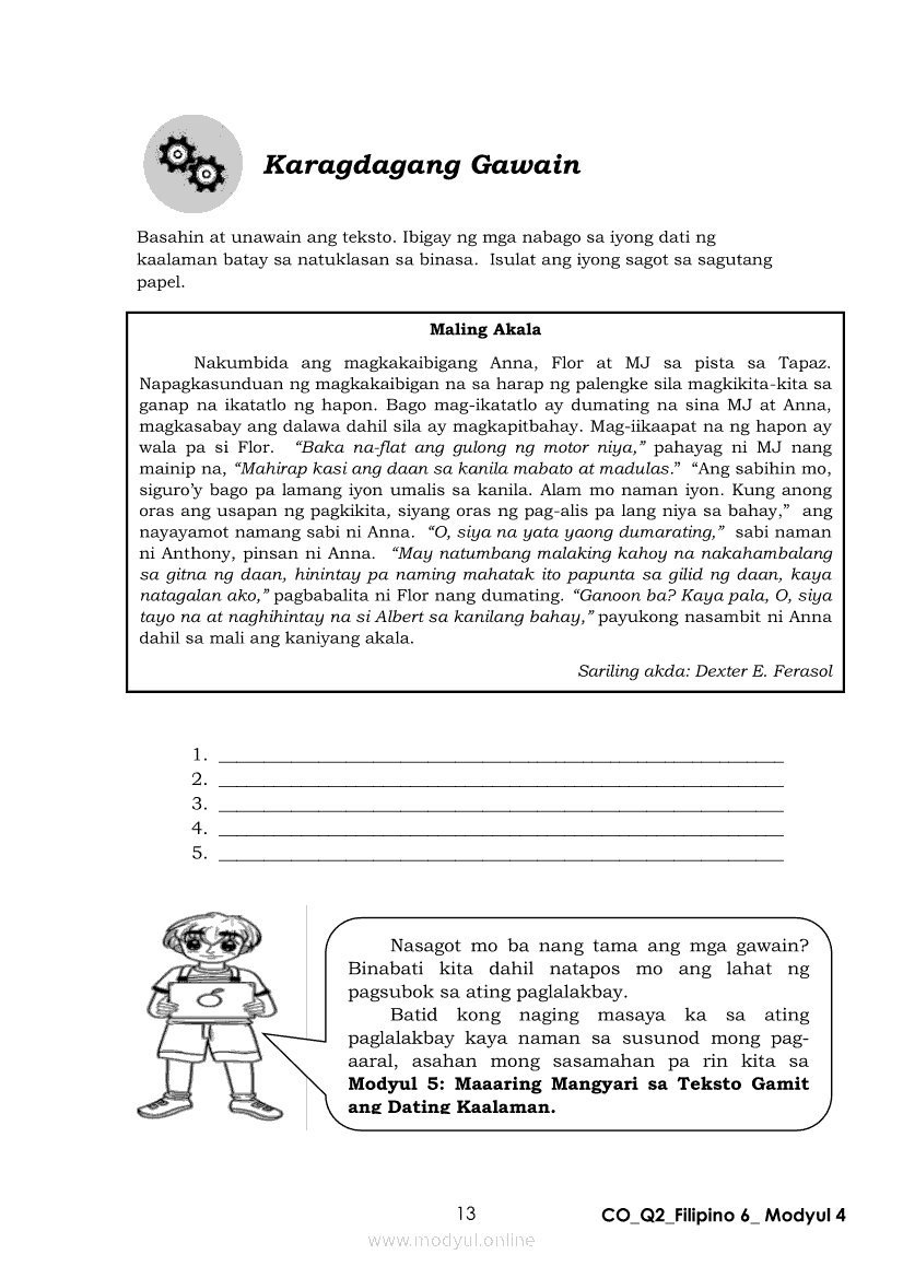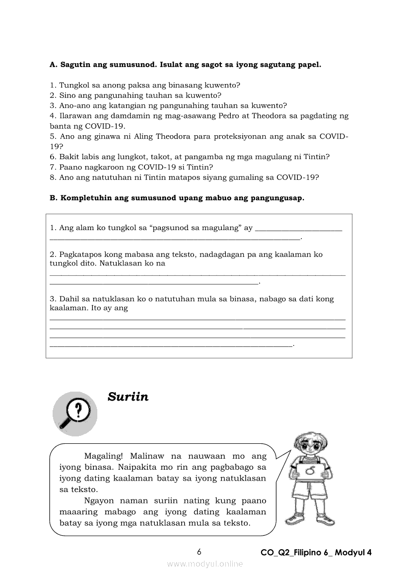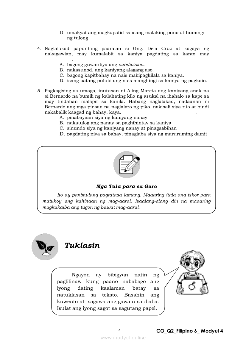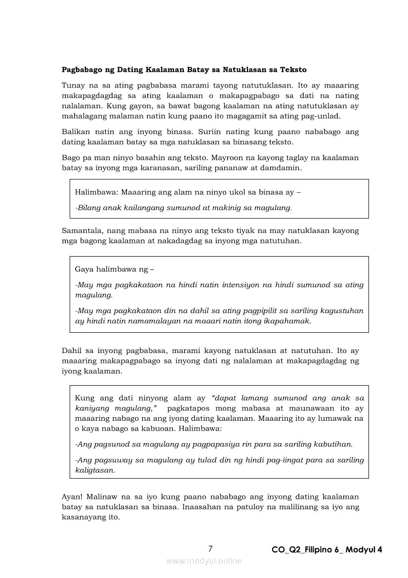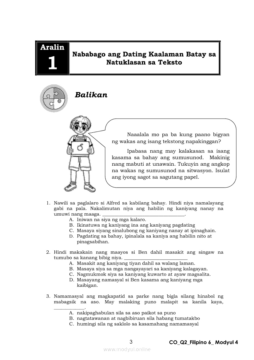 Filipino 6 Ikalawang Markahan – Modyul 4: Pagbabago ng Dating Kaalaman Batay sa Natuklasan sa TekstoApr 22, 2021 Grade 6Kiumo M901 Tablet for Kids — comprehensive protection in learning, safety, and entertainment for as low as **₱2,399!. Filipino 6RelatedFilipino 6 Ikaapat na Markahan – Modyul 3: Ang Pagkakaiba ng Kathang Isip at Di-Kathang Isip na Teksto (Fiction and Non-Fiction)Filipino 6 Ikaapat na Markahan – Modyul 4: Uri ng PelikulaFilipino 6 Ikaapat na Markahan – Modyul 1: Paggamit ng Pangngalan sa PatalastasFilipino 6 Ika-apat na Markahan – Modyul 2: Salitang MagkakaugnayFilipino 6 Modyul 1: Pagsagot sa mga Tanong Tungkol sa Napakinggan/Nabasang Pabula, Kuwento, Tekstong Pang-Impormasyon at Usapan