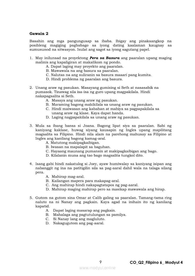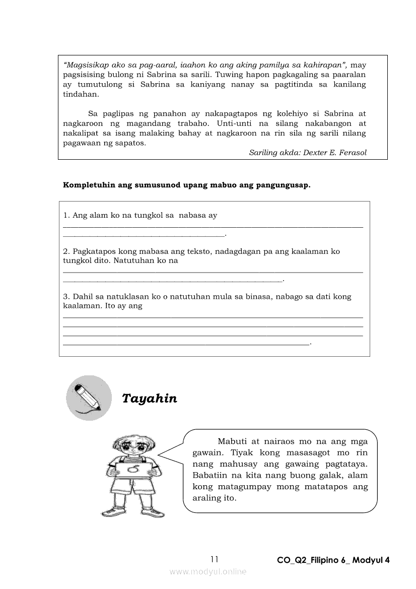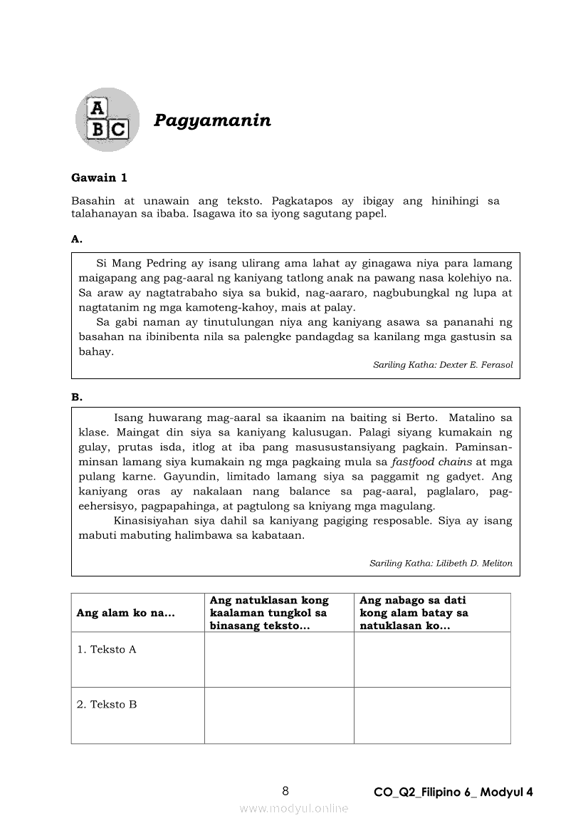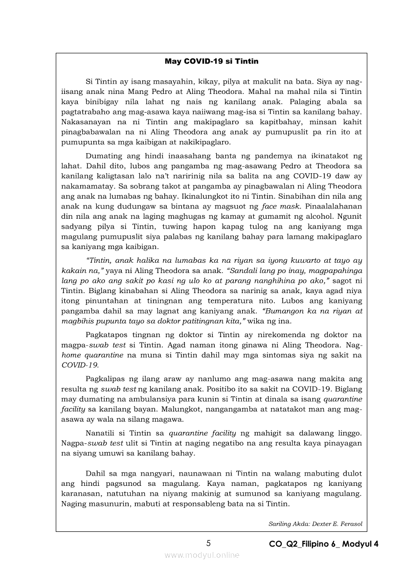 Filipino 6 Ikalawang Markahan – Modyul 4: Pagbabago ng Dating Kaalaman Batay sa Natuklasan sa TekstoApr 22, 2021 Grade 6Kiumo M901 Tablet for Kids — comprehensive protection in learning, safety, and entertainment for as low as **₱2,399!. Filipino 6RelatedFilipino 6 Ikaapat na Markahan – Modyul 3: Ang Pagkakaiba ng Kathang Isip at Di-Kathang Isip na Teksto (Fiction and Non-Fiction)Filipino 6 Ikaapat na Markahan – Modyul 4: Uri ng PelikulaFilipino 6 Ikaapat na Markahan – Modyul 1: Paggamit ng Pangngalan sa PatalastasFilipino 6 Ika-apat na Markahan – Modyul 2: Salitang MagkakaugnayFilipino 6 Modyul 1: Pagsagot sa mga Tanong Tungkol sa Napakinggan/Nabasang Pabula, Kuwento, Tekstong Pang-Impormasyon at Usapan