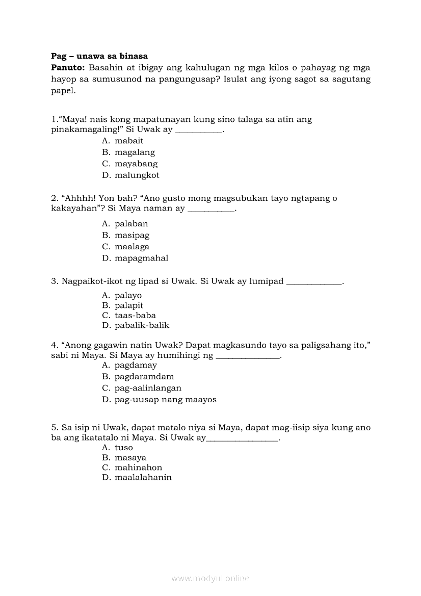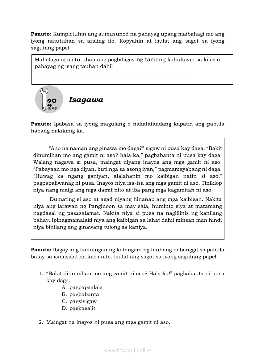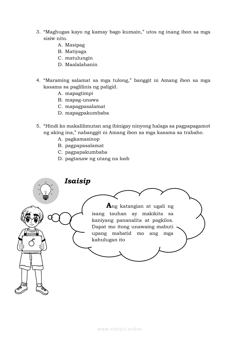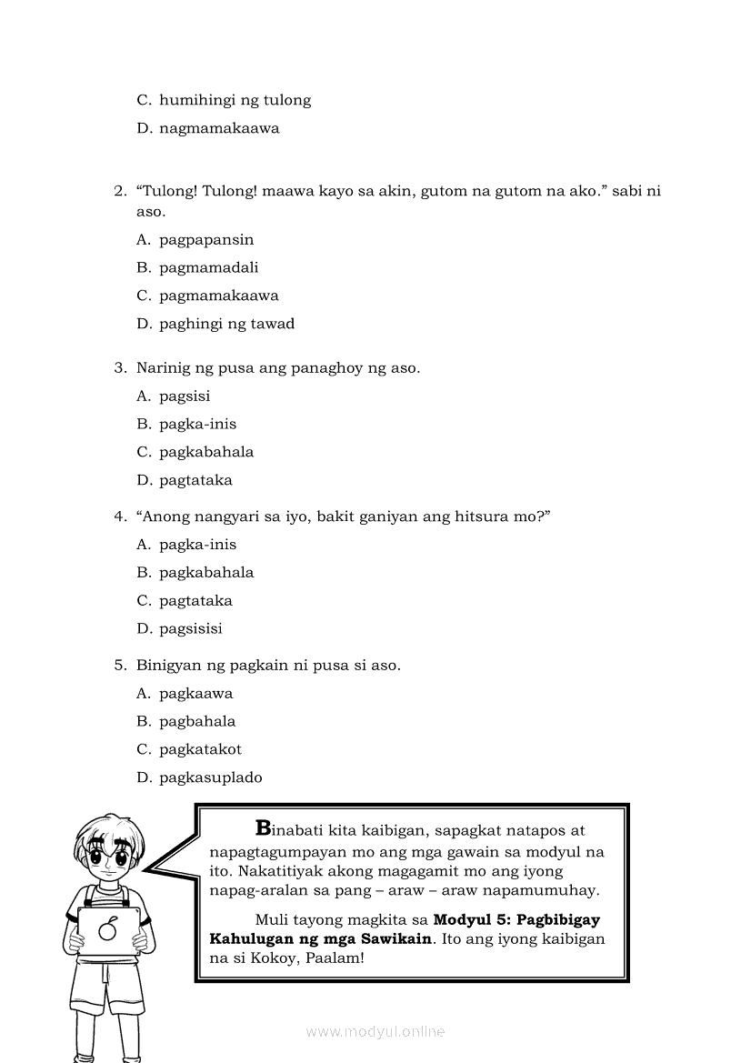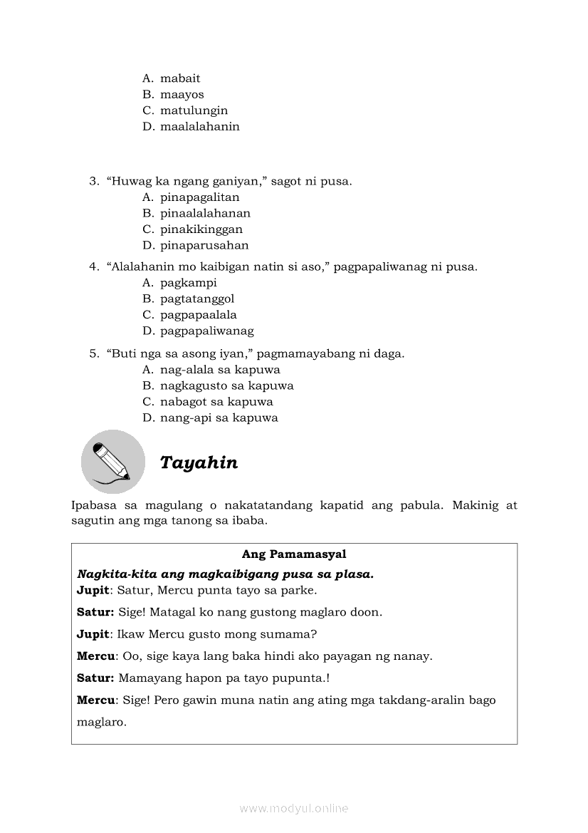 Filipino 6 Modyul 4: Pagbibigay Kahulugan sa Kilos at Pahayag ng mga Tauhan sa Napakinggang PabulaApr 22, 2021 Grade 6Kiumo M901 Tablet for Kids — comprehensive protection in learning, safety, and entertainment for as low as **₱2,399!. Filipino 6RelatedFilipino 6 Ikaapat na Markahan – Modyul 4: Uri ng PelikulaFilipino 6 Ikaapat na Markahan – Modyul 1: Paggamit ng Pangngalan sa PatalastasFilipino 6 Ikaapat na Markahan – Modyul 3: Ang Pagkakaiba ng Kathang Isip at Di-Kathang Isip na Teksto (Fiction and Non-Fiction)Filipino 6 Ika-apat na Markahan – Modyul 2: Salitang MagkakaugnayFilipino 6 Modyul 1: Pagsagot sa mga Tanong Tungkol sa Napakinggan/Nabasang Pabula, Kuwento, Tekstong Pang-Impormasyon at Usapan