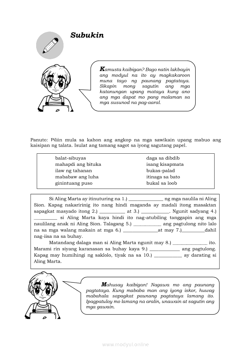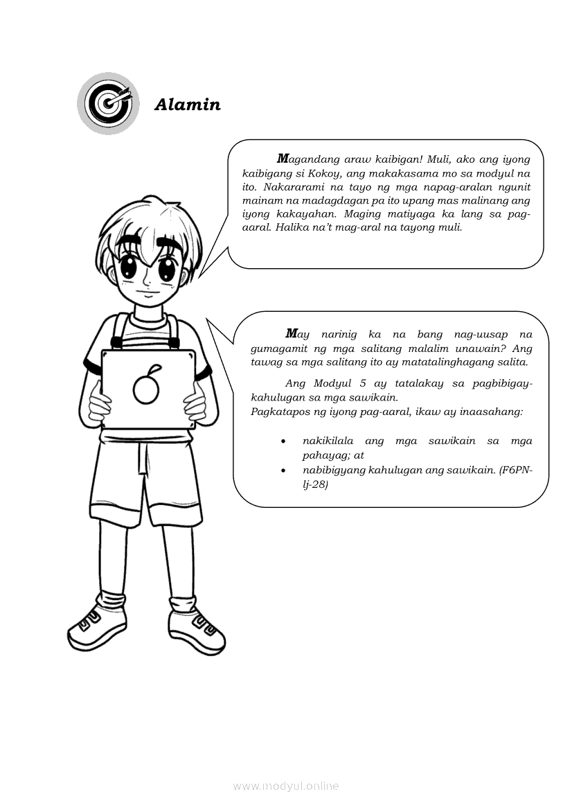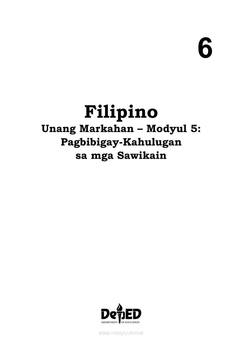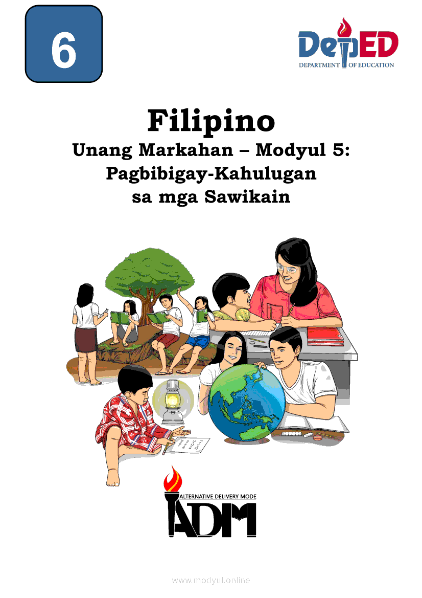 Filipino 6 Modyul 5: Pagbibigay-Kahulugan sa mga SawikainApr 22, 2021 Grade 6Kiumo M901 Tablet for Kids — comprehensive protection in learning, safety, and entertainment for as low as **₱2,399!. Filipino 6RelatedFilipino 6 Ikaapat na Markahan – Modyul 1: Paggamit ng Pangngalan sa PatalastasFilipino 6 Ikaapat na Markahan – Modyul 4: Uri ng PelikulaFilipino 6 Ikaapat na Markahan – Modyul 3: Ang Pagkakaiba ng Kathang Isip at Di-Kathang Isip na Teksto (Fiction and Non-Fiction)Filipino 6 Ika-apat na Markahan – Modyul 2: Salitang MagkakaugnayFilipino 6 Modyul 1: Pagsagot sa mga Tanong Tungkol sa Napakinggan/Nabasang Pabula, Kuwento, Tekstong Pang-Impormasyon at Usapan