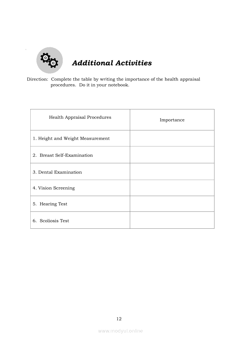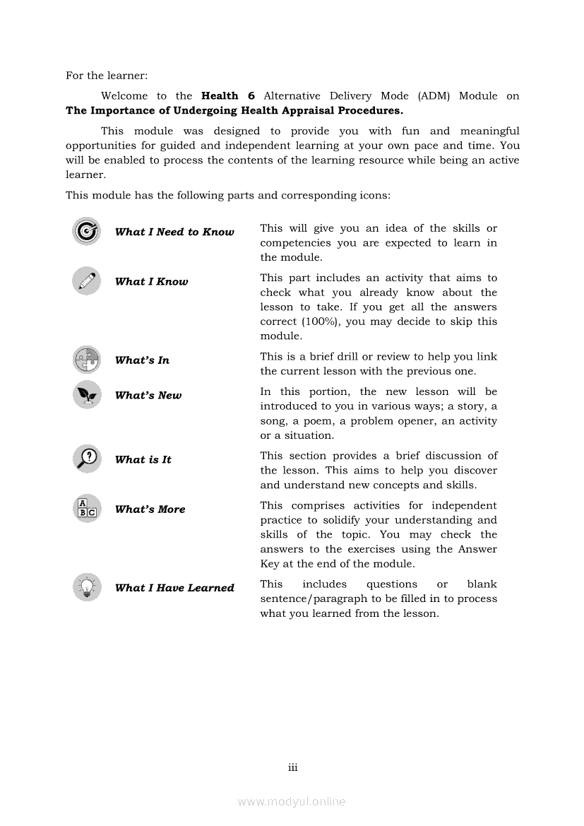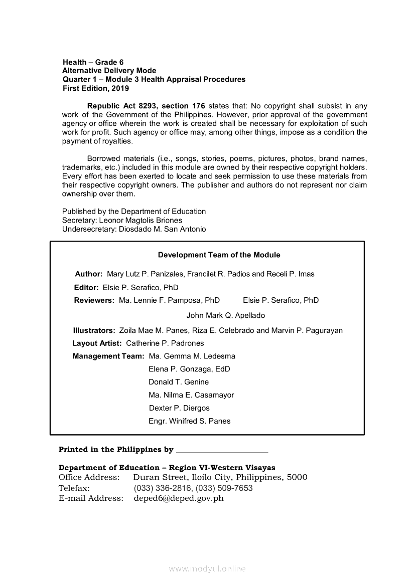 Health 6 Module 3 Importance of Undergoing Health Appraisal ProceduresApr 22, 2021 Grade 6Kiumo M901 Tablet for Kids — comprehensive protection in learning, safety, and entertainment for as low as **₱2,399!. Health 6RelatedHEALTH Quarter 4 – Module 4a: CONSUMER HEALTHHEALTH Quarter 4 – Module 4b: Consumer HealthHealth 6 Module 1 - Lesson 1: Personal Health Issues and ConcernsHealth 6 Second Quarter Module (PIVOT)Health 6 Quarter 2 – Module 3: Demonstrate Ways to Build and Keep School and Community Environments Healthy