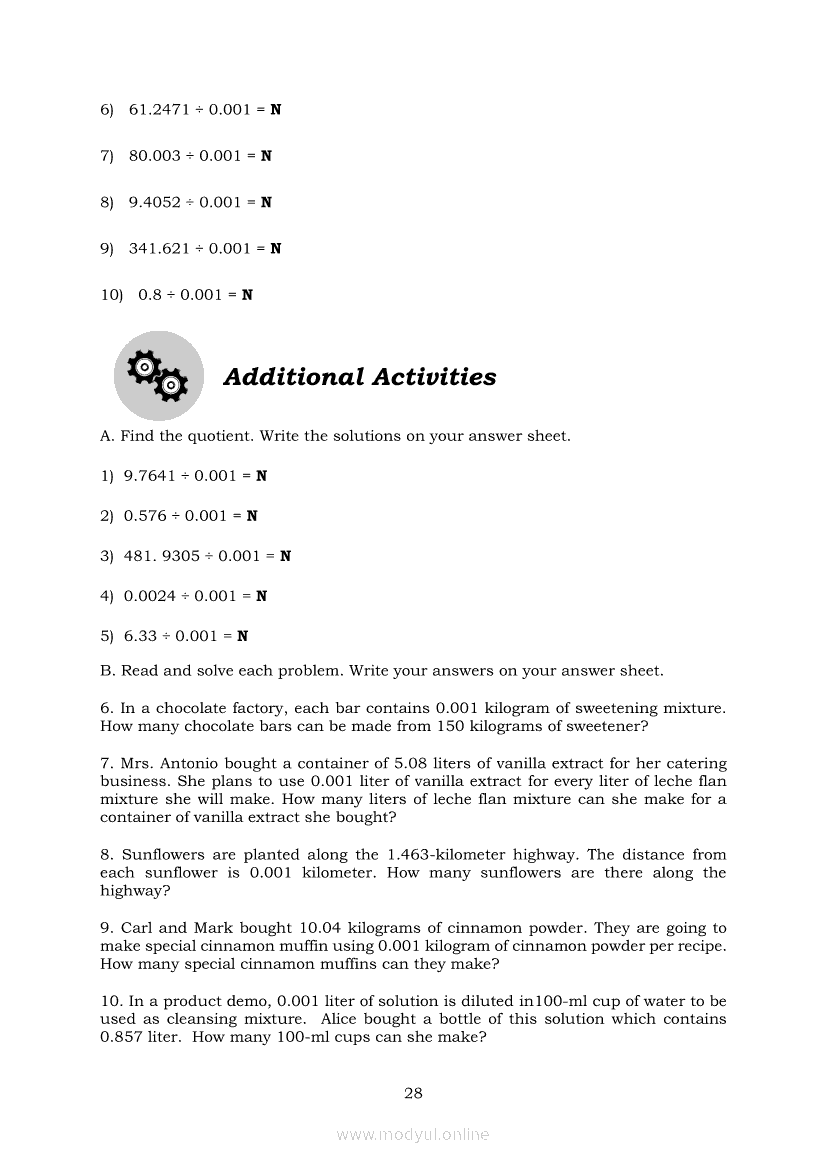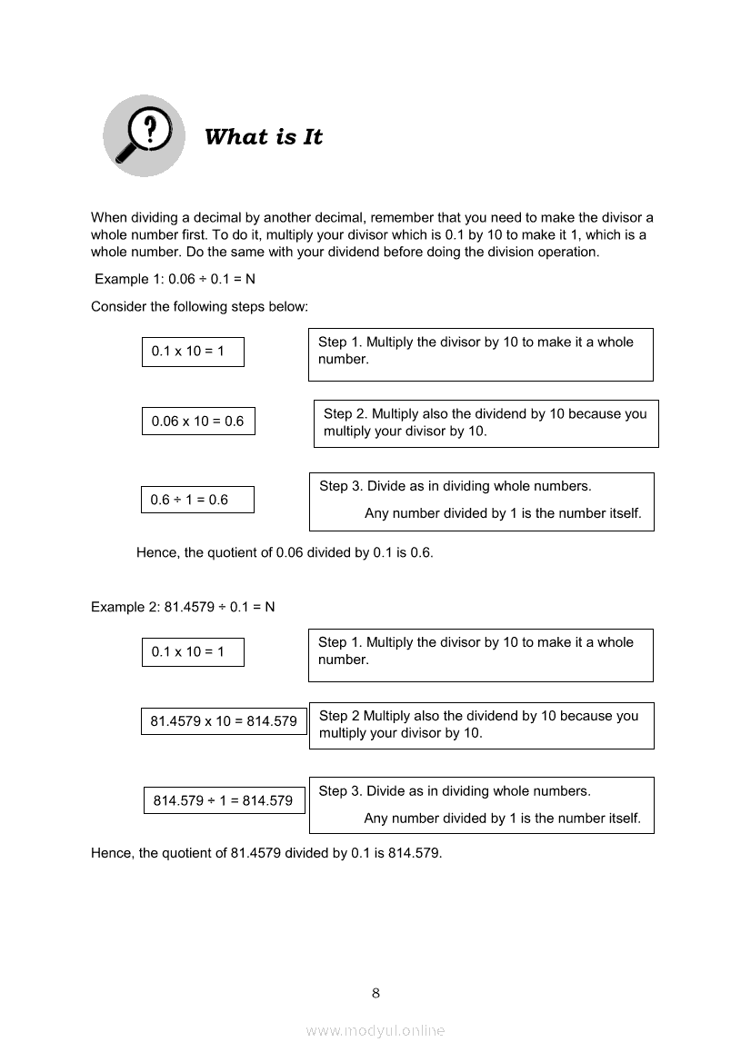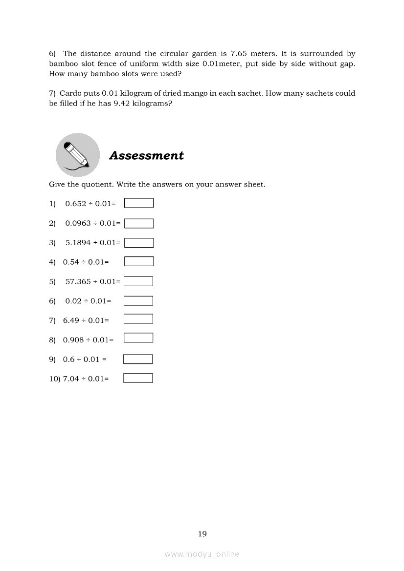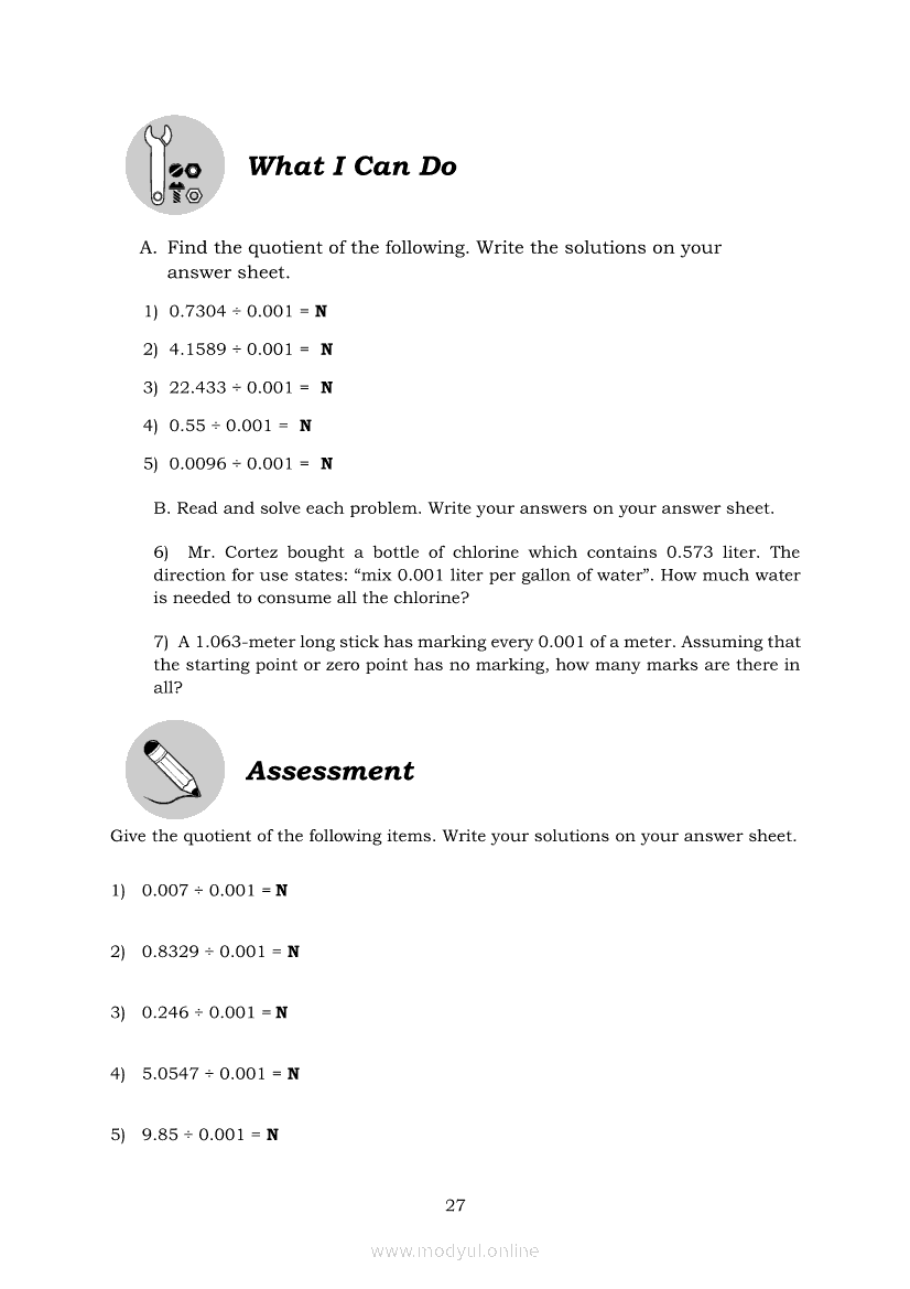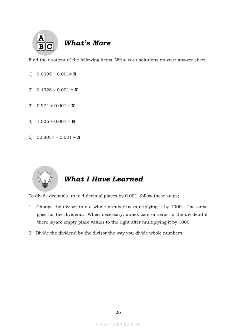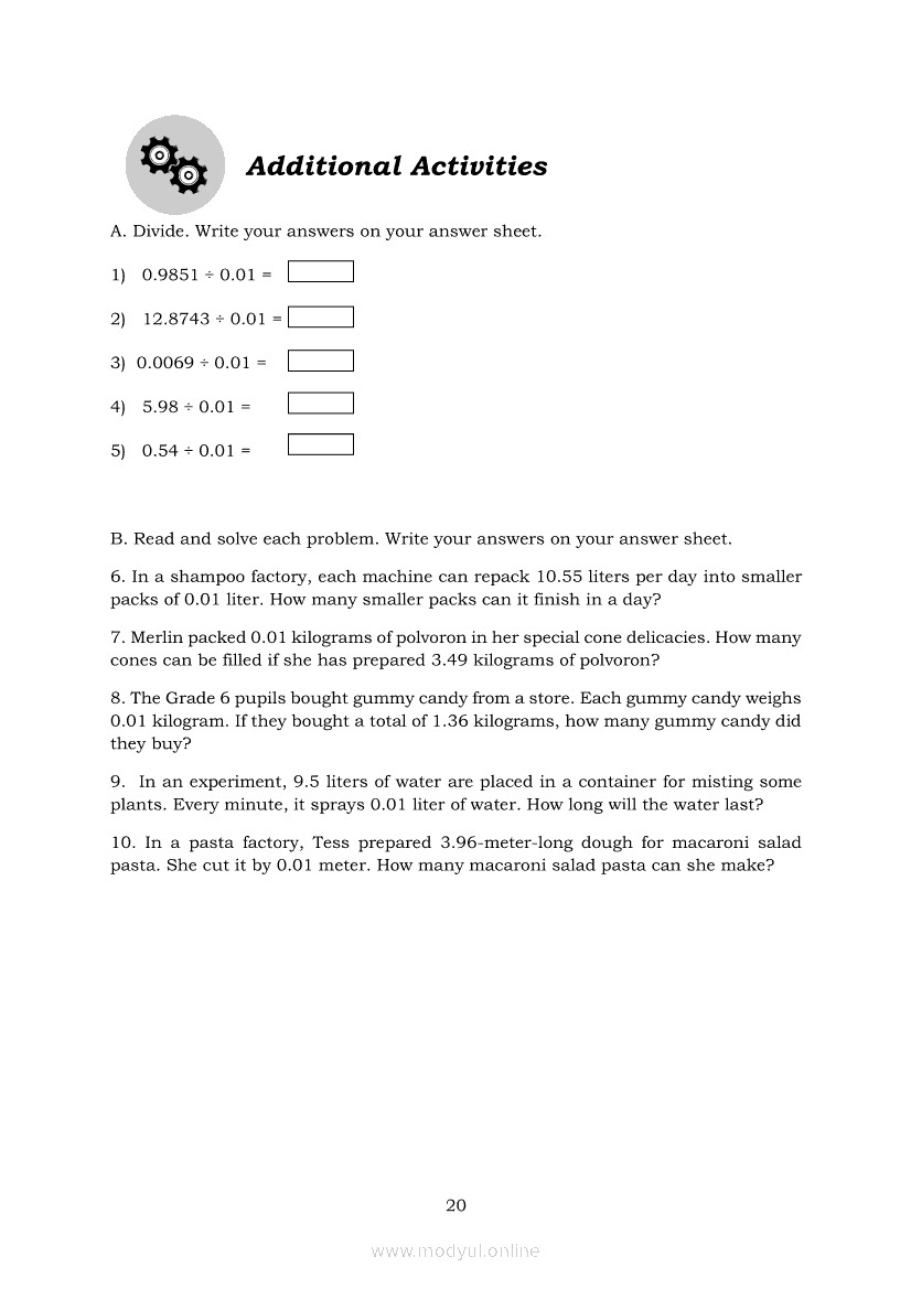 Math 6 Module 10: Division of Decimals Up To 4 Decimal Places By 0.1, 0.01, And 0.001 Division of Decimals Up To 2 Decimal Places By 10, 100, And 1 000 MentallyApr 22, 2021 Grade 6Kiumo M901 Tablet for Kids — comprehensive protection in learning, safety, and entertainment for as low as **₱2,399!. Math 6RelatedMATHEMATICS Quarter 4 – Module 6 Describe the Meaning of Probability Such as 50% Chance of Rain and One in a Million Chance of WinningMATHEMATICS Quarter 4 – Module 7 Making and Telling The Number of Favorable Outcomes and Chances Using Listing and DiagramsMathematics Quarter 4 – Module 3 Solving Routine and Non-Routine Problems Involving Electric and Water ConsumptionMATHEMATICS Quarter 4 – Module 4 Constructing and Interpreting a Pie GraphMATHEMATICS Quarter 4 – Module 5 Solving Word Problems using Data Presented in a Pie Graph