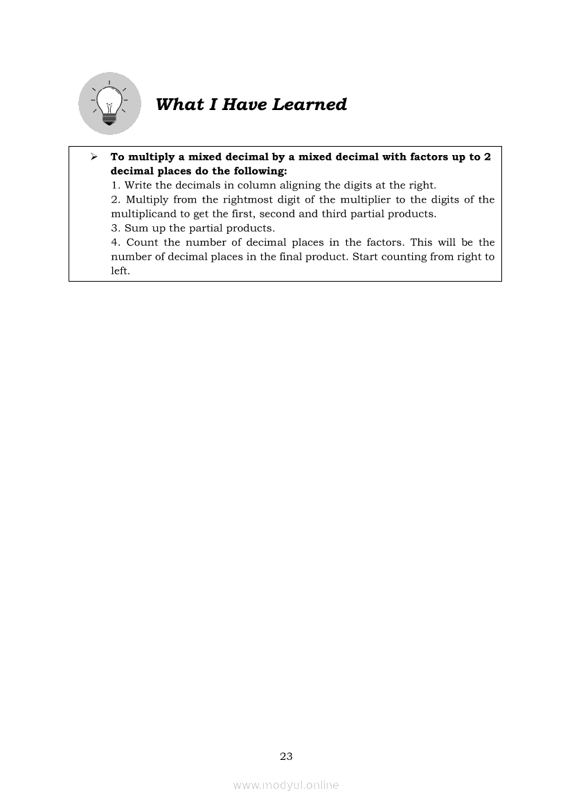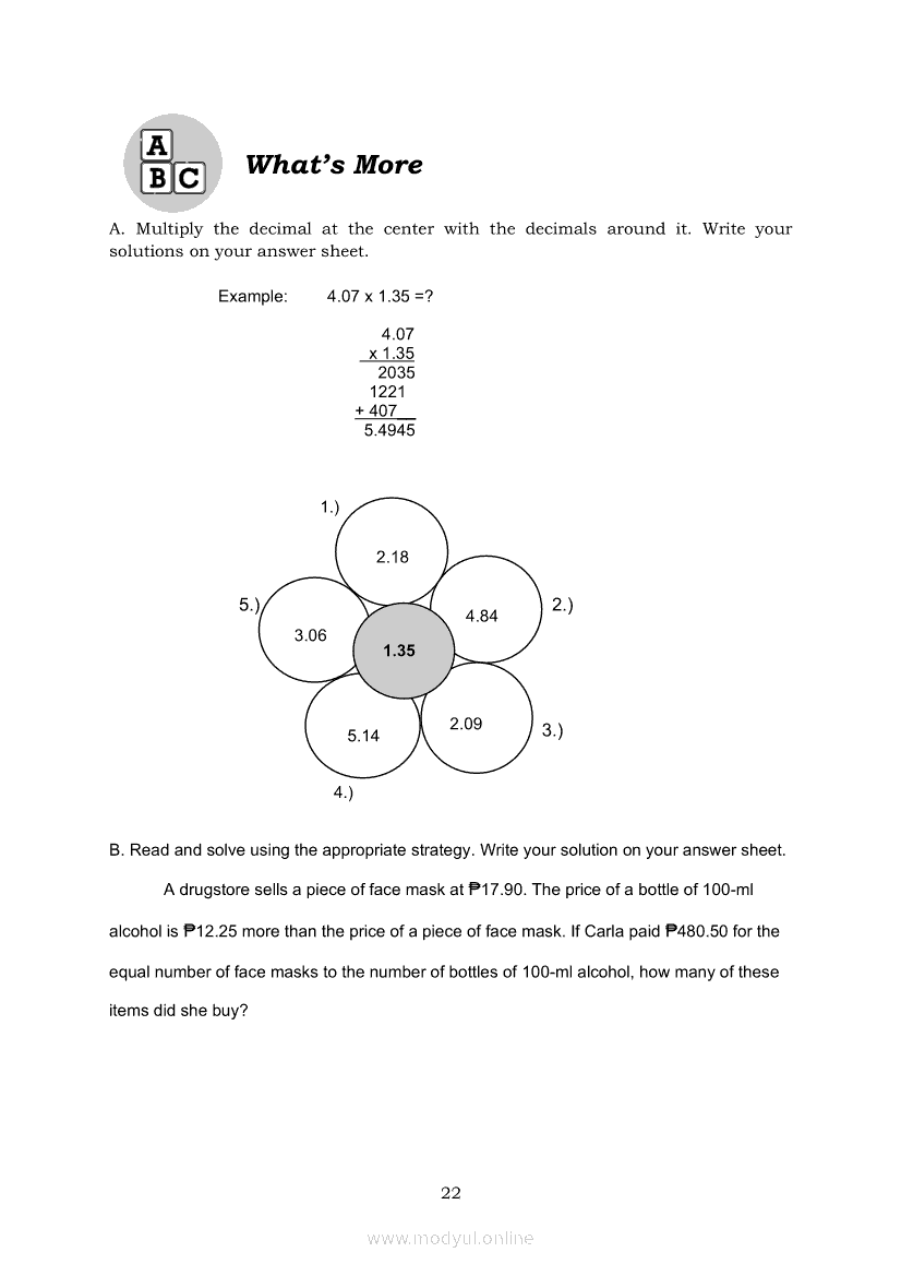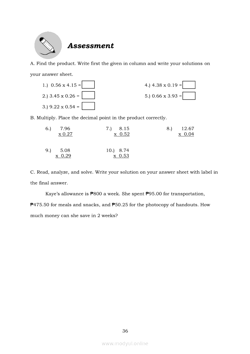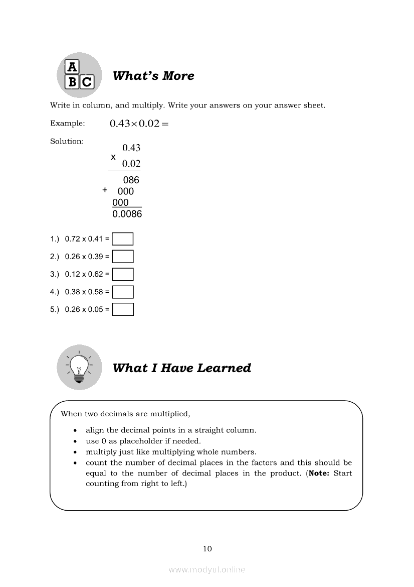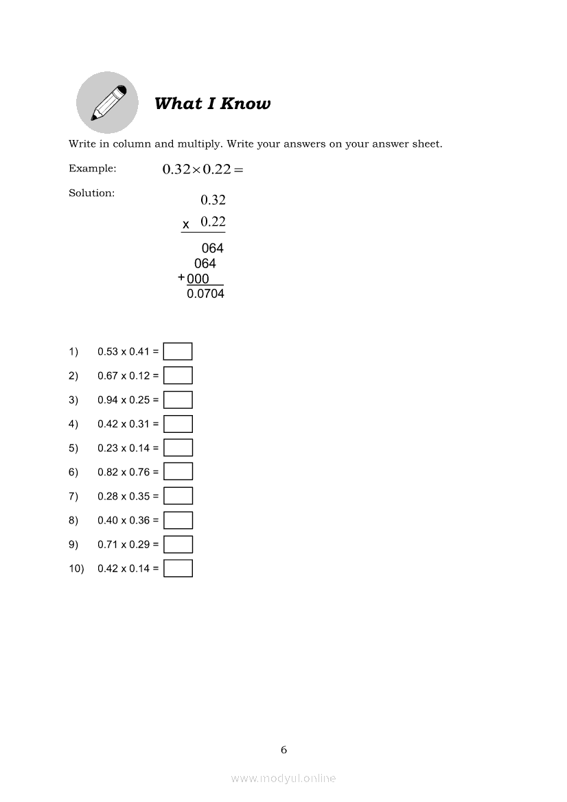 Math 6 Module 7: Multiplication of Decimals and Mixed Decimals With Factors Up To 2 Decimal PlacesApr 22, 2021 Grade 6Kiumo M901 Tablet for Kids — comprehensive protection in learning, safety, and entertainment for as low as **₱2,399!. Math 6RelatedMATHEMATICS Quarter 4 – Module 2 Solving Problems Involving Volume of Pyramids, Cones, Cylinders, and SpheresMATHEMATICS Quarter 4 – Module 4 Constructing and Interpreting a Pie GraphMATHEMATICS Quarter 4 – Module 8 Making Simple Predictions of Events and Solving Problems Involving Experimental and Theoretical ProbabilityMATHEMATICS Quarter 4 – Module 5 Solving Word Problems using Data Presented in a Pie GraphMATHEMATICS Quarter 4 – Module 1 Determining the Relationship of Volume Between a Rectangular Prism and a Pyramid; a Cylinder and a Cone and a Cylinder and a Sphere