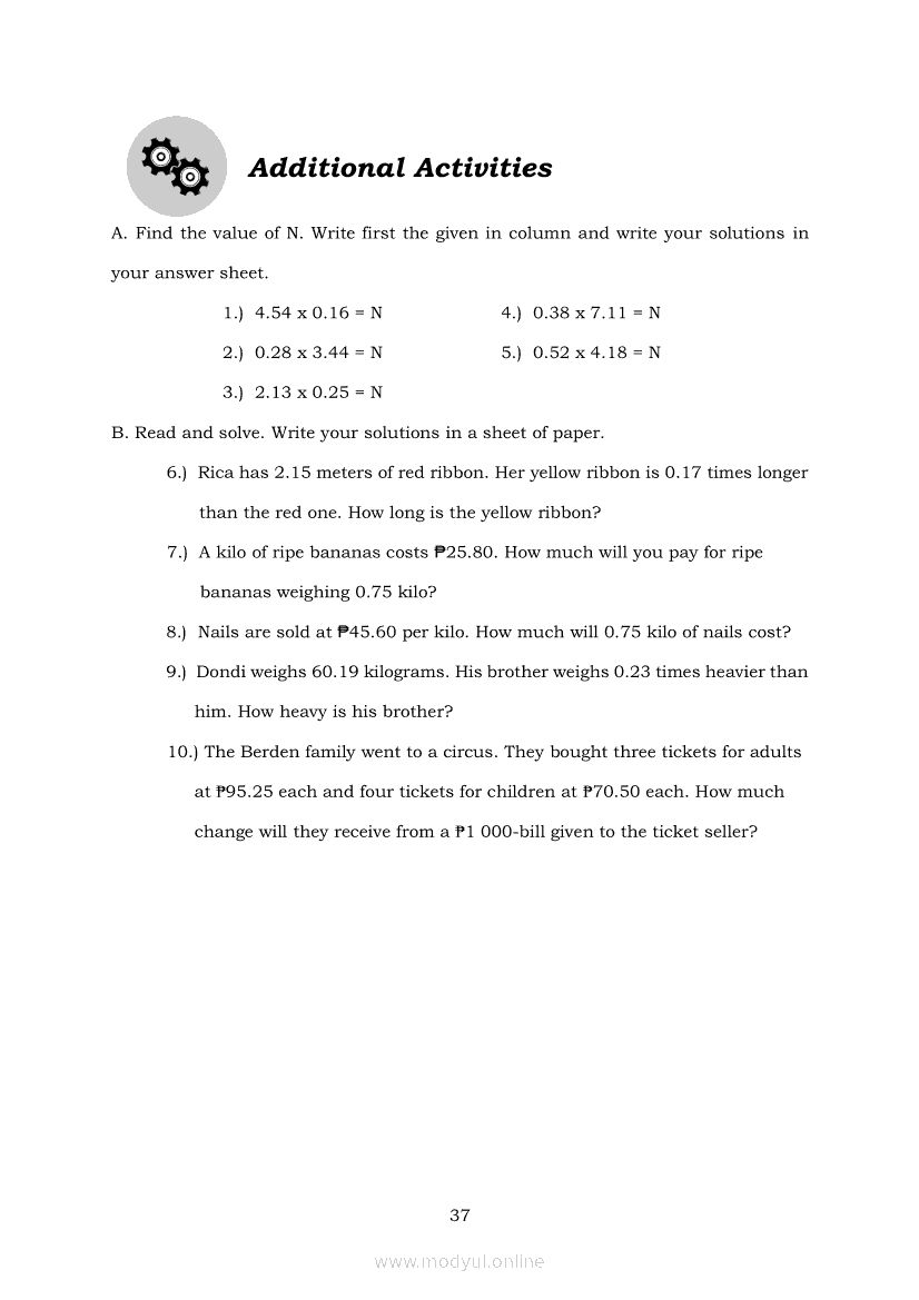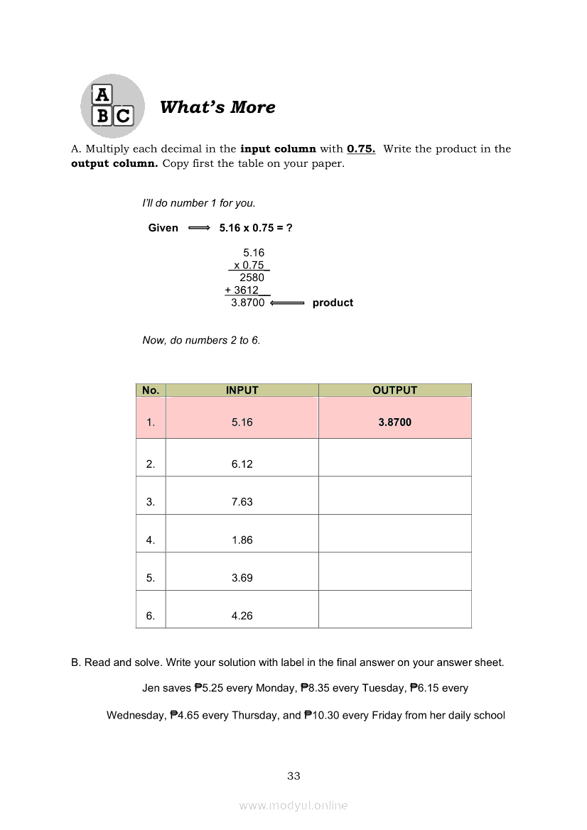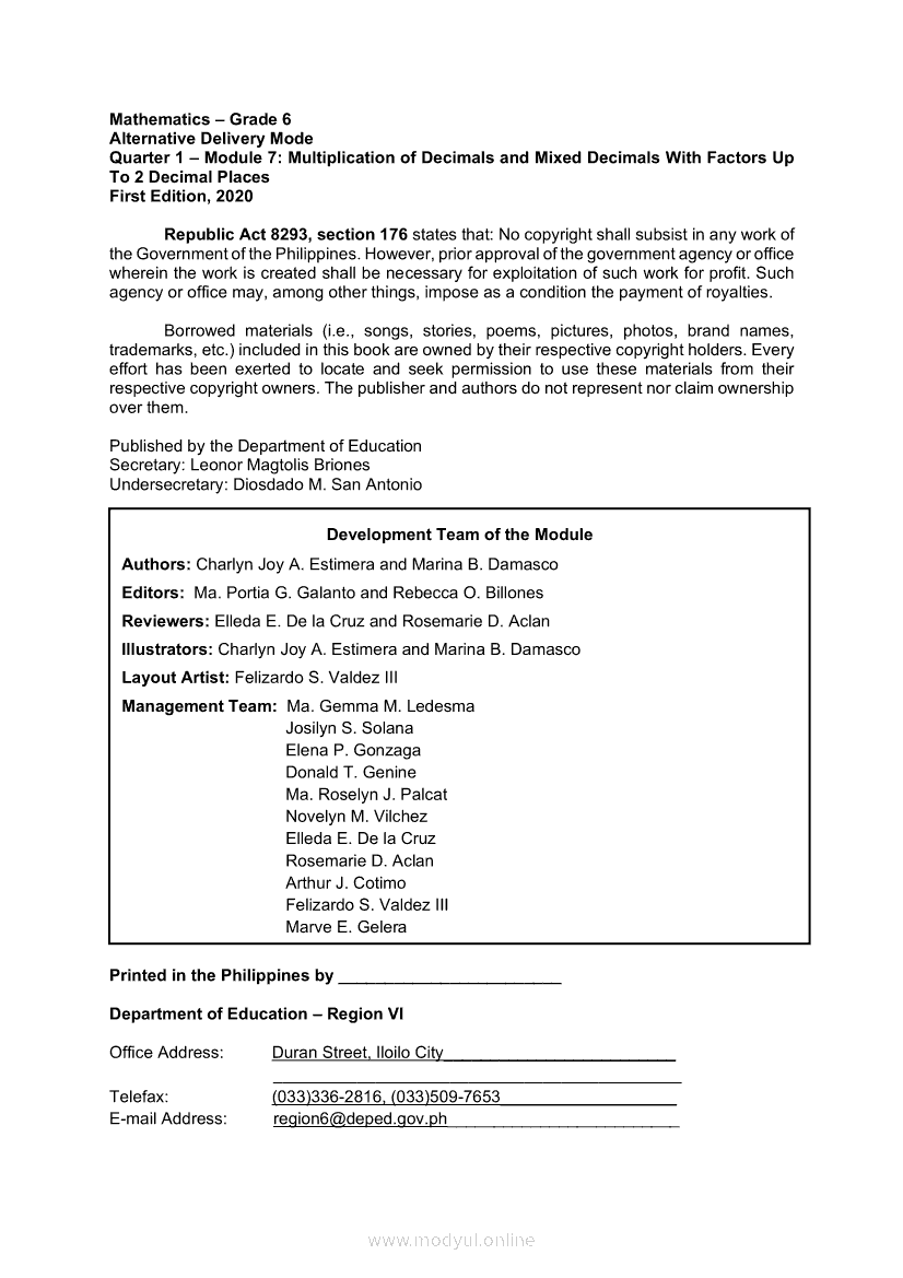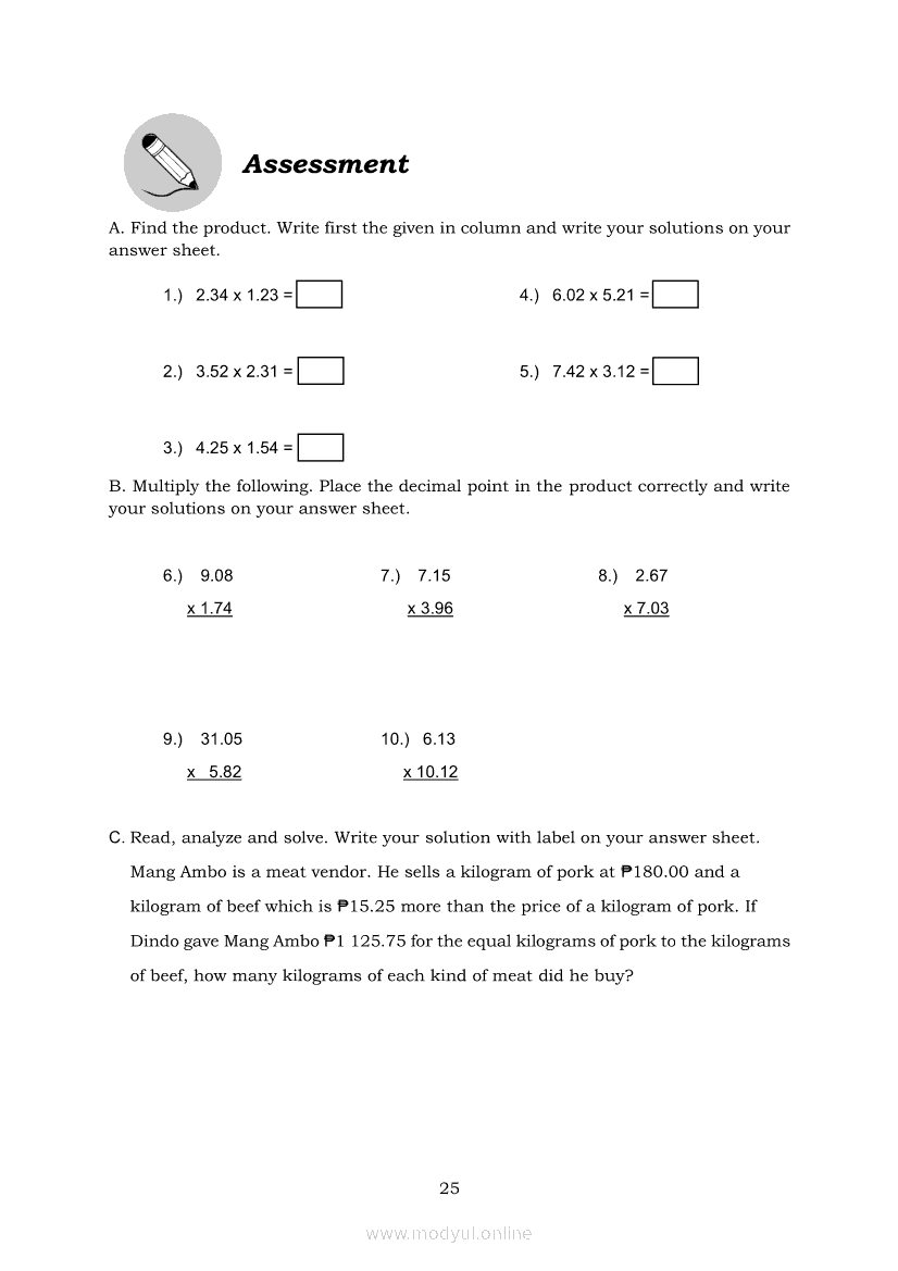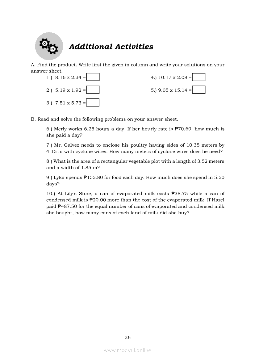 Math 6 Module 7: Multiplication of Decimals and Mixed Decimals With Factors Up To 2 Decimal PlacesApr 22, 2021 Grade 6Kiumo M901 Tablet for Kids — comprehensive protection in learning, safety, and entertainment for as low as **₱2,399!. Math 6RelatedMATHEMATICS Quarter 4 – Module 2 Solving Problems Involving Volume of Pyramids, Cones, Cylinders, and SpheresMATHEMATICS Quarter 4 – Module 4 Constructing and Interpreting a Pie GraphMATHEMATICS Quarter 4 – Module 8 Making Simple Predictions of Events and Solving Problems Involving Experimental and Theoretical ProbabilityMATHEMATICS Quarter 4 – Module 5 Solving Word Problems using Data Presented in a Pie GraphMATHEMATICS Quarter 4 – Module 1 Determining the Relationship of Volume Between a Rectangular Prism and a Pyramid; a Cylinder and a Cone and a Cylinder and a Sphere