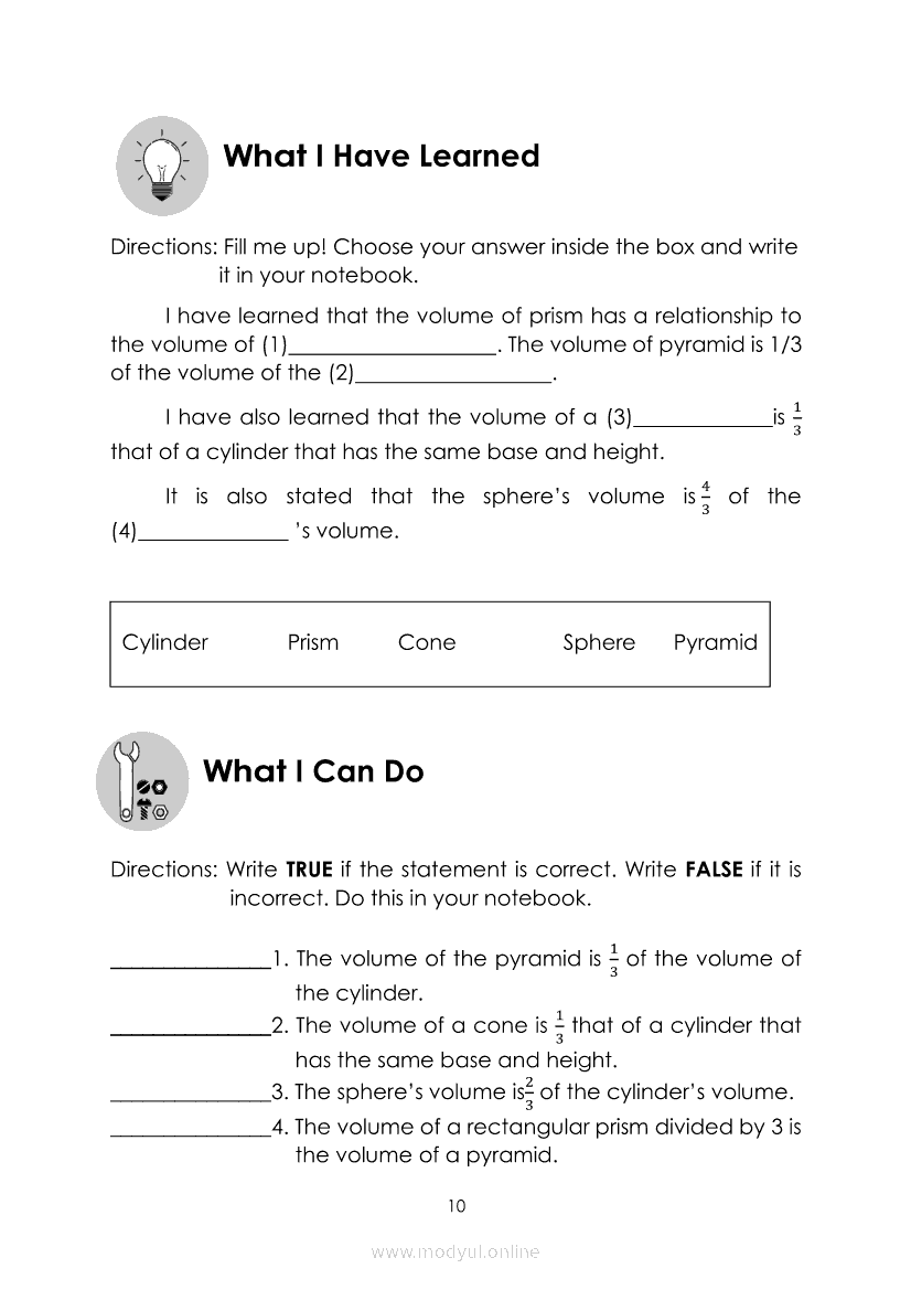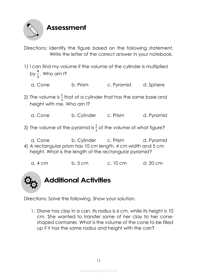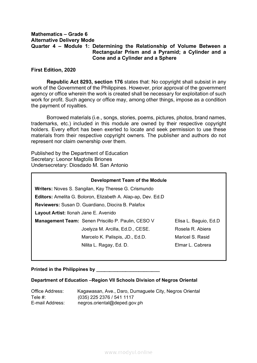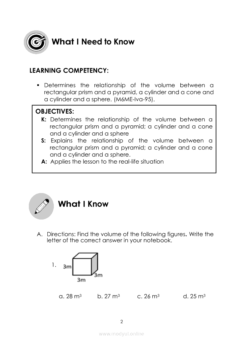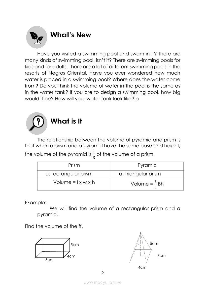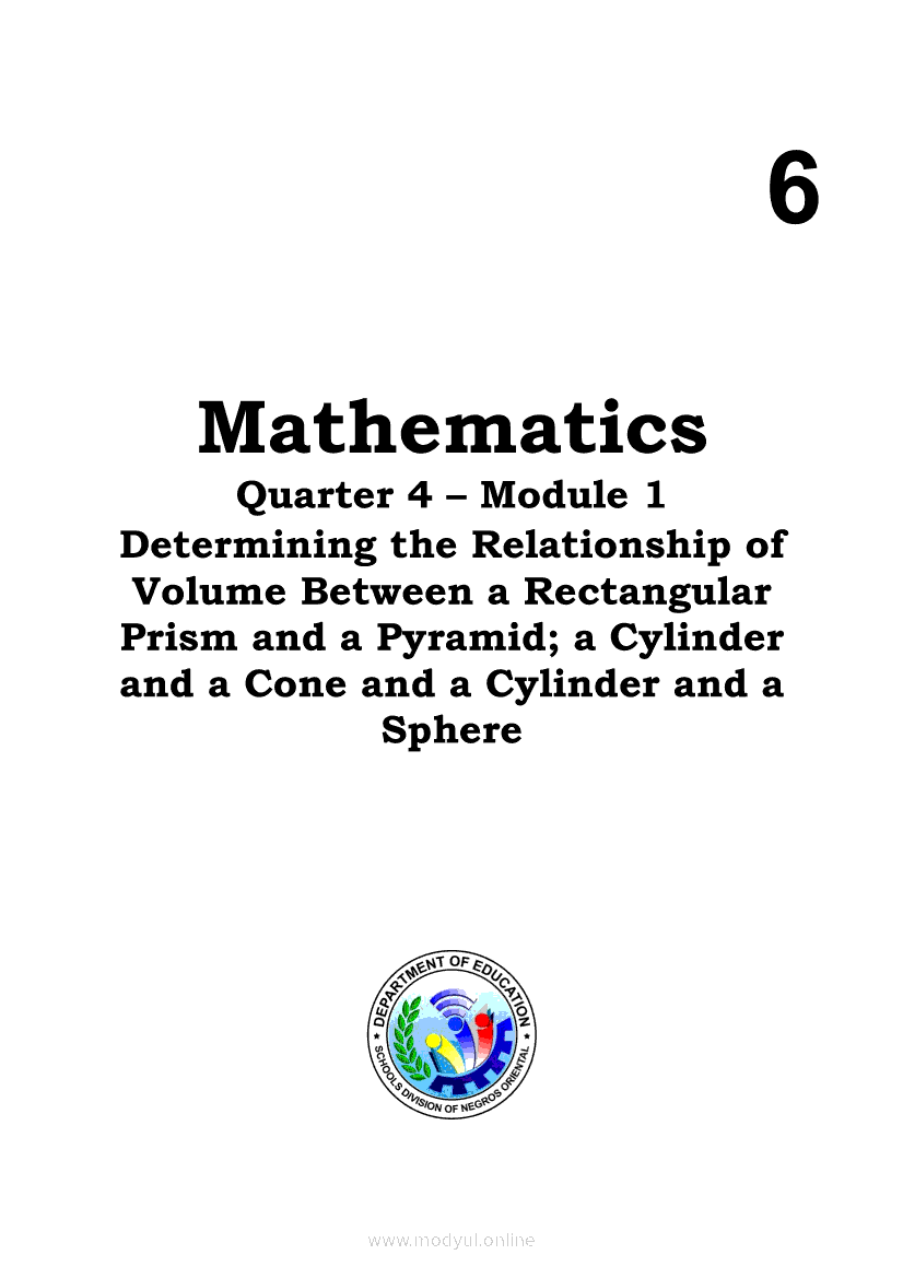 MATHEMATICS Quarter 4 – Module 1 Determining the Relationship of Volume Between a Rectangular Prism and a Pyramid; a Cylinder and a Cone and a Cylinder and a SphereMay 27, 2021 Grade 6Kiumo M901 Tablet for Kids — comprehensive protection in learning, safety, and entertainment for as low as **₱2,399!. Math 6 4th QuarterRelatedMATHEMATICS Quarter 4 – Module 2 Solving Problems Involving Volume of Pyramids, Cones, Cylinders, and SpheresMATHEMATICS Quarter 4 – Module 8 Making Simple Predictions of Events and Solving Problems Involving Experimental and Theoretical ProbabilityMATHEMATICS Quarter 4 – Module 6 Describe the Meaning of Probability Such as 50% Chance of Rain and One in a Million Chance of WinningMATHEMATICS Quarter 4 – Module 4 Constructing and Interpreting a Pie GraphMathematics Quarter 4 – Module 3 Solving Routine and Non-Routine Problems Involving Electric and Water Consumption