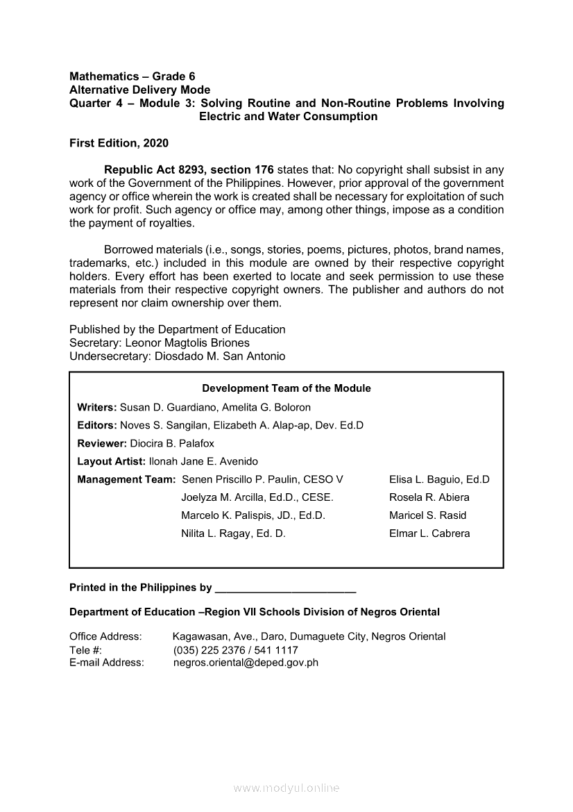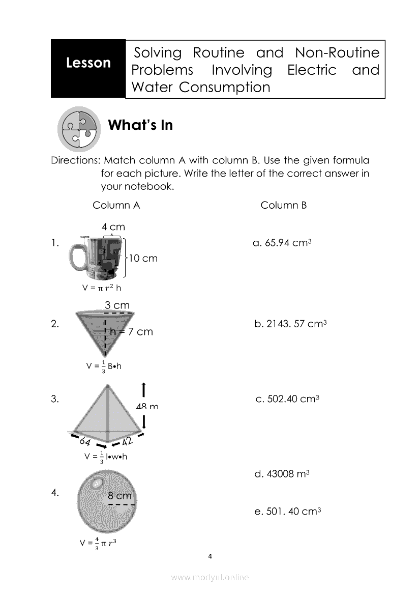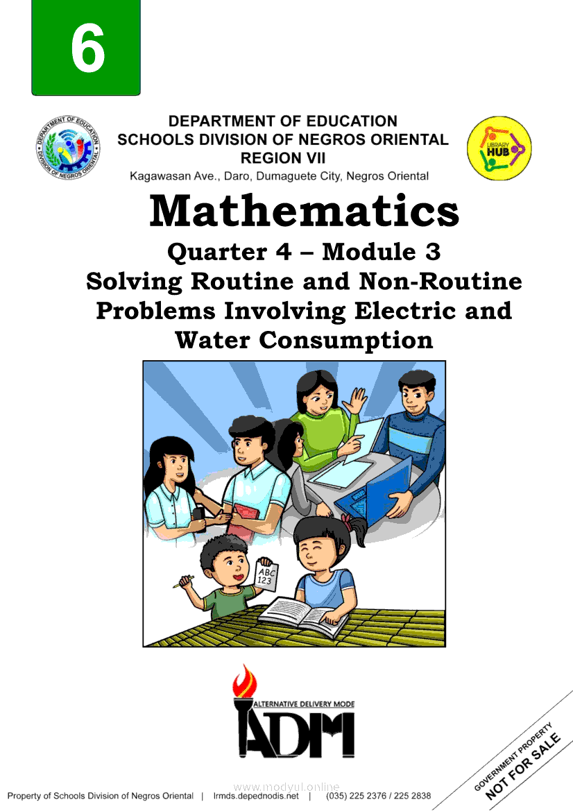 Mathematics Quarter 4 – Module 3 Solving Routine and Non-Routine Problems Involving Electric and Water ConsumptionMay 27, 2021 Grade 6Kiumo M901 Tablet for Kids — comprehensive protection in learning, safety, and entertainment for as low as **₱2,399!. Math 6 4th QuarterRelatedMATHEMATICS Quarter 4 – Module 8 Making Simple Predictions of Events and Solving Problems Involving Experimental and Theoretical ProbabilityMATHEMATICS Quarter 4 – Module 5 Solving Word Problems using Data Presented in a Pie GraphMATHEMATICS Quarter 4 – Module 1 Determining the Relationship of Volume Between a Rectangular Prism and a Pyramid; a Cylinder and a Cone and a Cylinder and a SphereMATHEMATICS Quarter 4 – Module 7 Making and Telling The Number of Favorable Outcomes and Chances Using Listing and DiagramsMATHEMATICS Quarter 4 – Module 2 Solving Problems Involving Volume of Pyramids, Cones, Cylinders, and Spheres