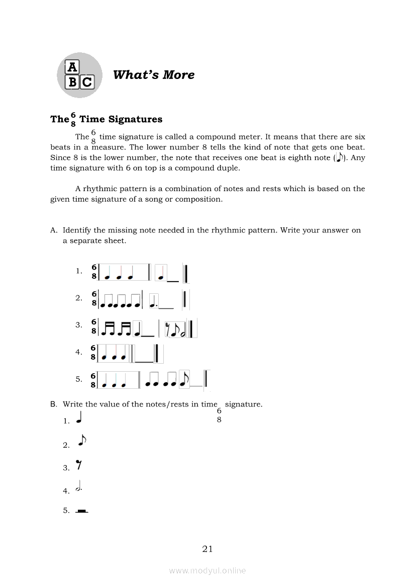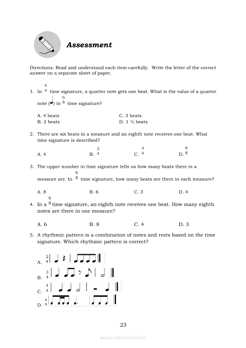 Music 6 Module 2: Rhythm: Differentiate Time SignaturesApr 22, 2021 Grade 6Kiumo M901 Tablet for Kids — comprehensive protection in learning, safety, and entertainment for as low as **₱2,399!. Music 6RelatedMUSIC Quarter 4 – Module 4b: Appreciating Music Through Texture and HarmonyMUSIC Quarter 4 – Module 4a: Tempo and TextureMusic 6 Module 1: Rhythm: Notes and RestsMusic 6 Module 4: Creating Rhythmic PatternsMusic 6 Module 3: Rhythm: Conduct Time Signatures