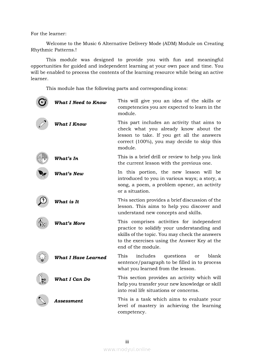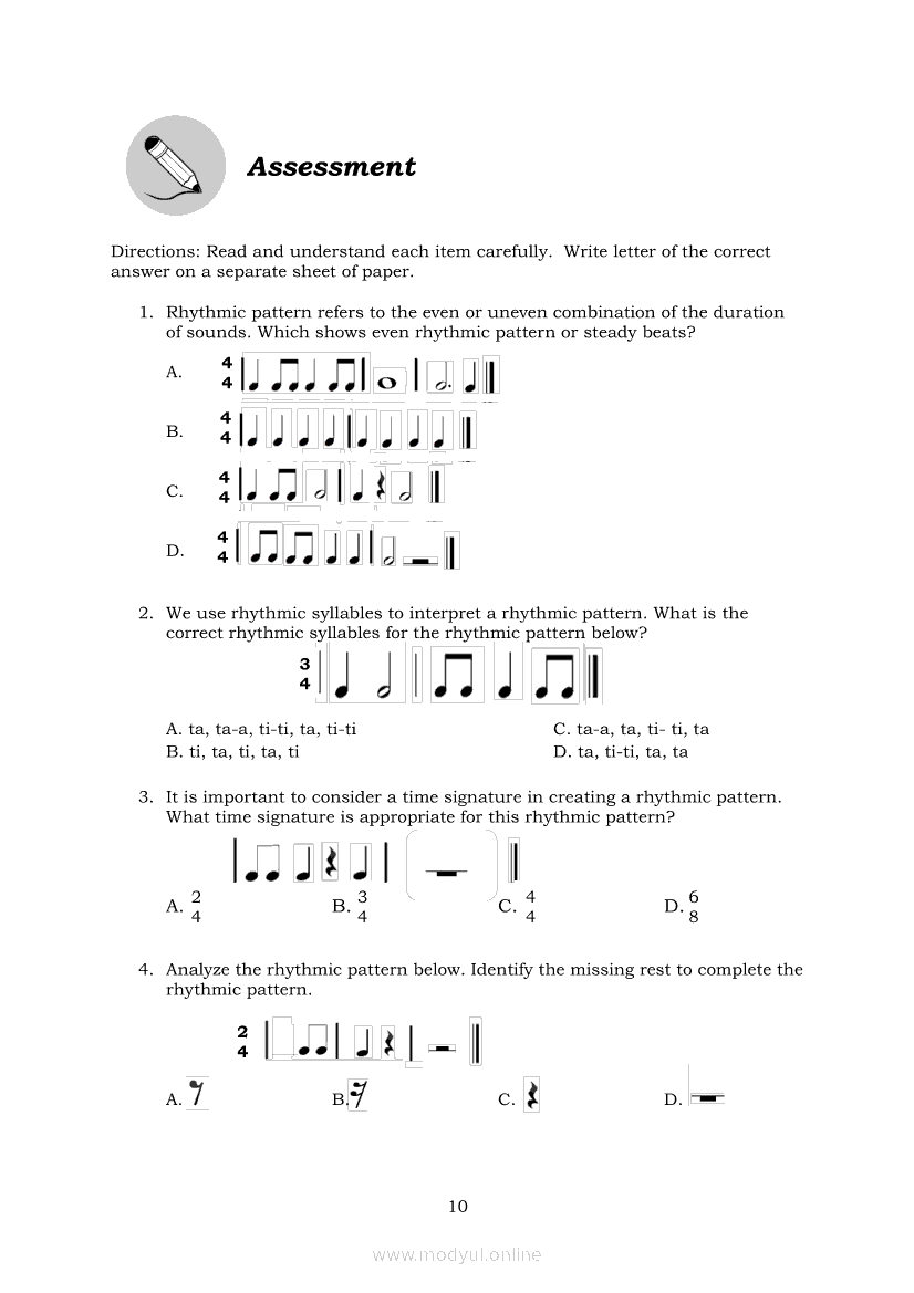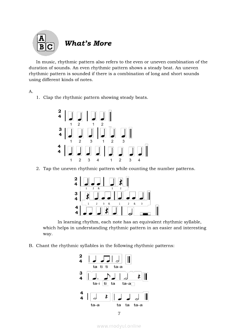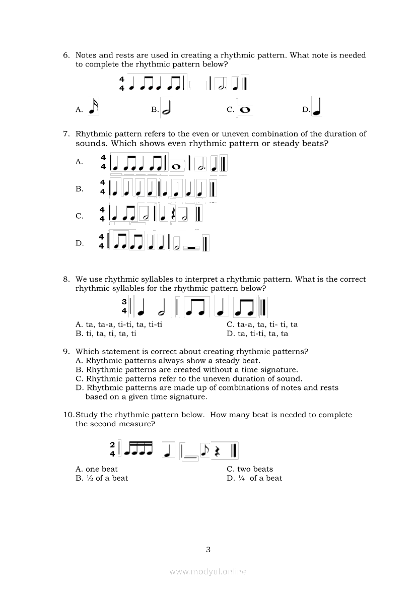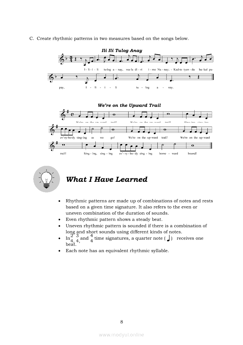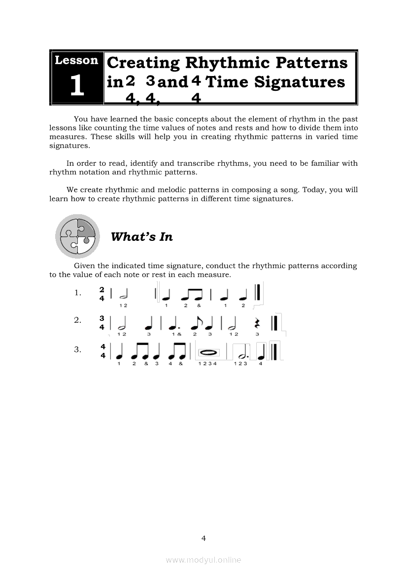 Music 6 Module 4: Creating Rhythmic PatternsApr 22, 2021 Grade 6Kiumo M901 Tablet for Kids — comprehensive protection in learning, safety, and entertainment for as low as **₱2,399!. Music 6RelatedMUSIC Quarter 4 – Module 4a: Tempo and TextureMUSIC Quarter 4 – Module 4b: Appreciating Music Through Texture and HarmonyMusic 6 Module 1: Rhythm: Notes and RestsMusic 6 Module 2: Rhythm: Differentiate Time SignaturesMusic 6 Module 3: Rhythm: Conduct Time Signatures
