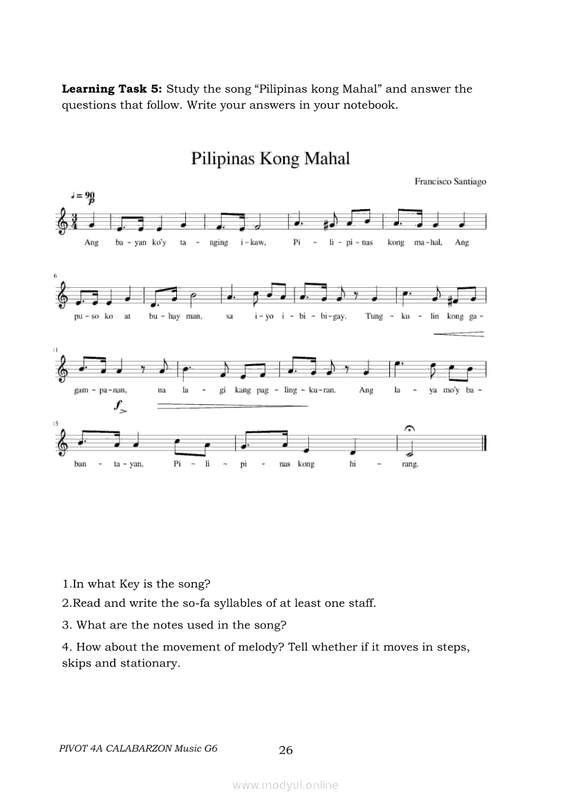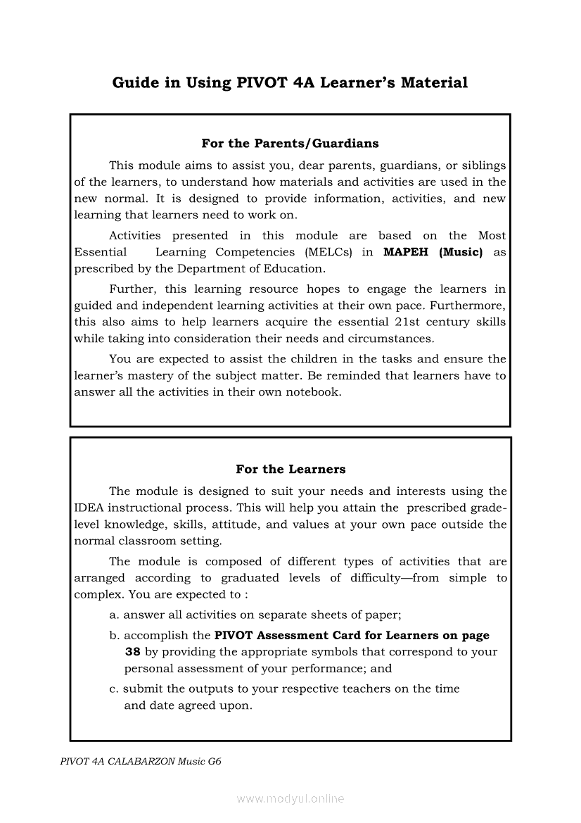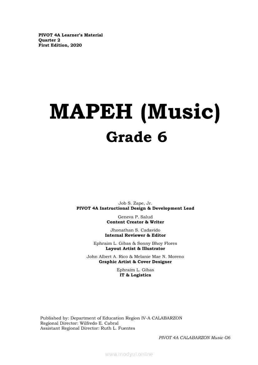 Music 6 Second Quarter Module (PIVOT)Apr 22, 2021 Grade 6Kiumo M901 Tablet for Kids — comprehensive protection in learning, safety, and entertainment for as low as **₱2,399!. Music 6RelatedMUSIC Quarter 4 – Module 4a: Tempo and TextureMUSIC Quarter 4 – Module 4b: Appreciating Music Through Texture and HarmonyMusic 6 Module 1: Rhythm: Notes and RestsMusic 6 Module 2: Rhythm: Differentiate Time SignaturesMusic 6 Module 3: Rhythm: Conduct Time Signatures