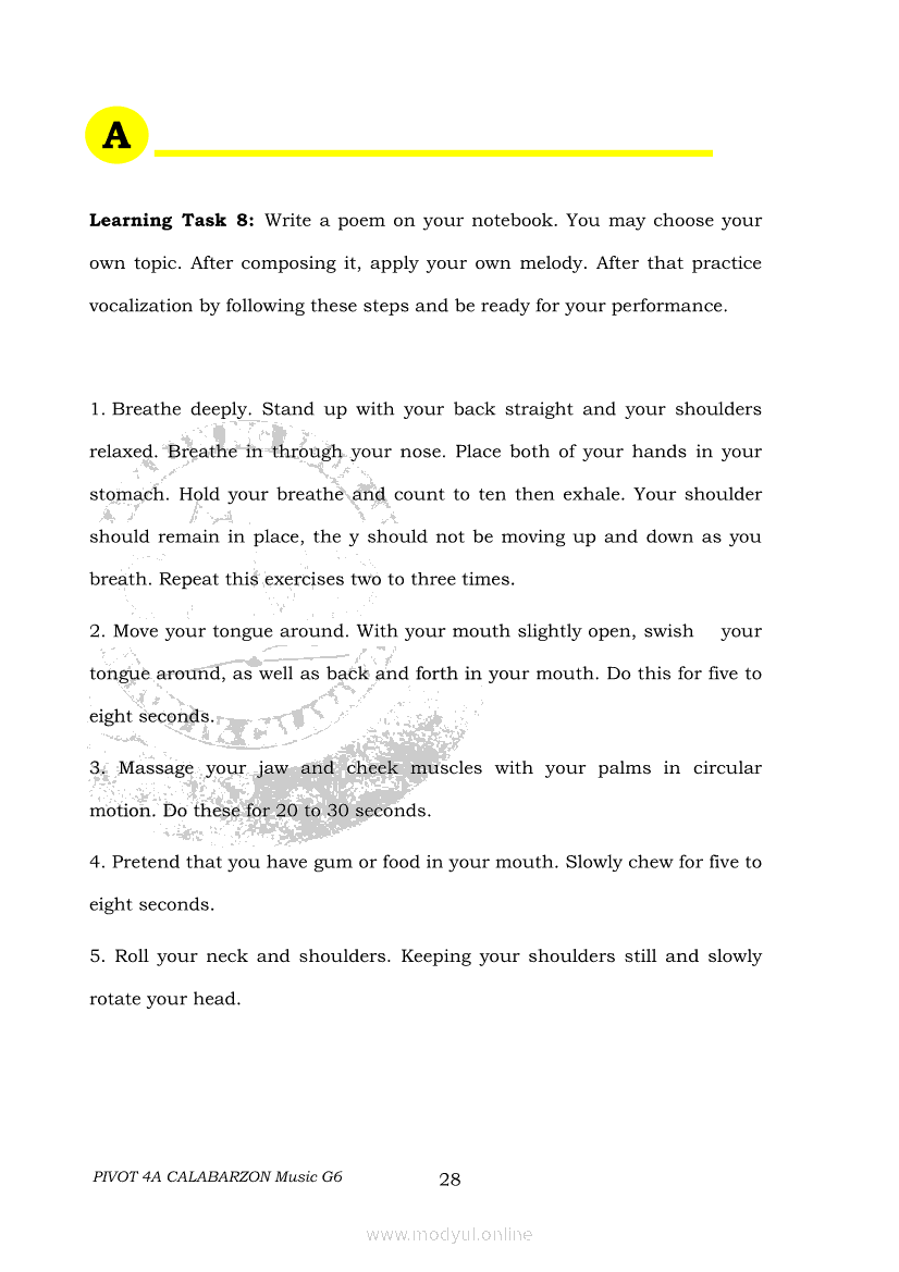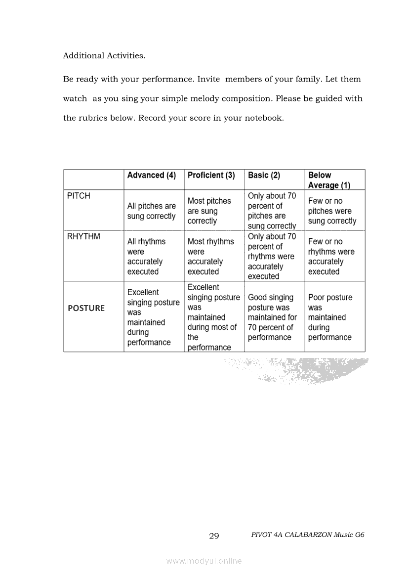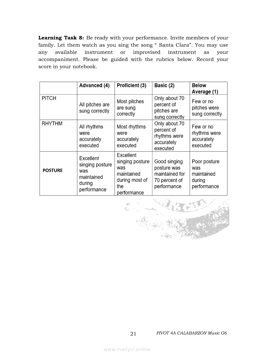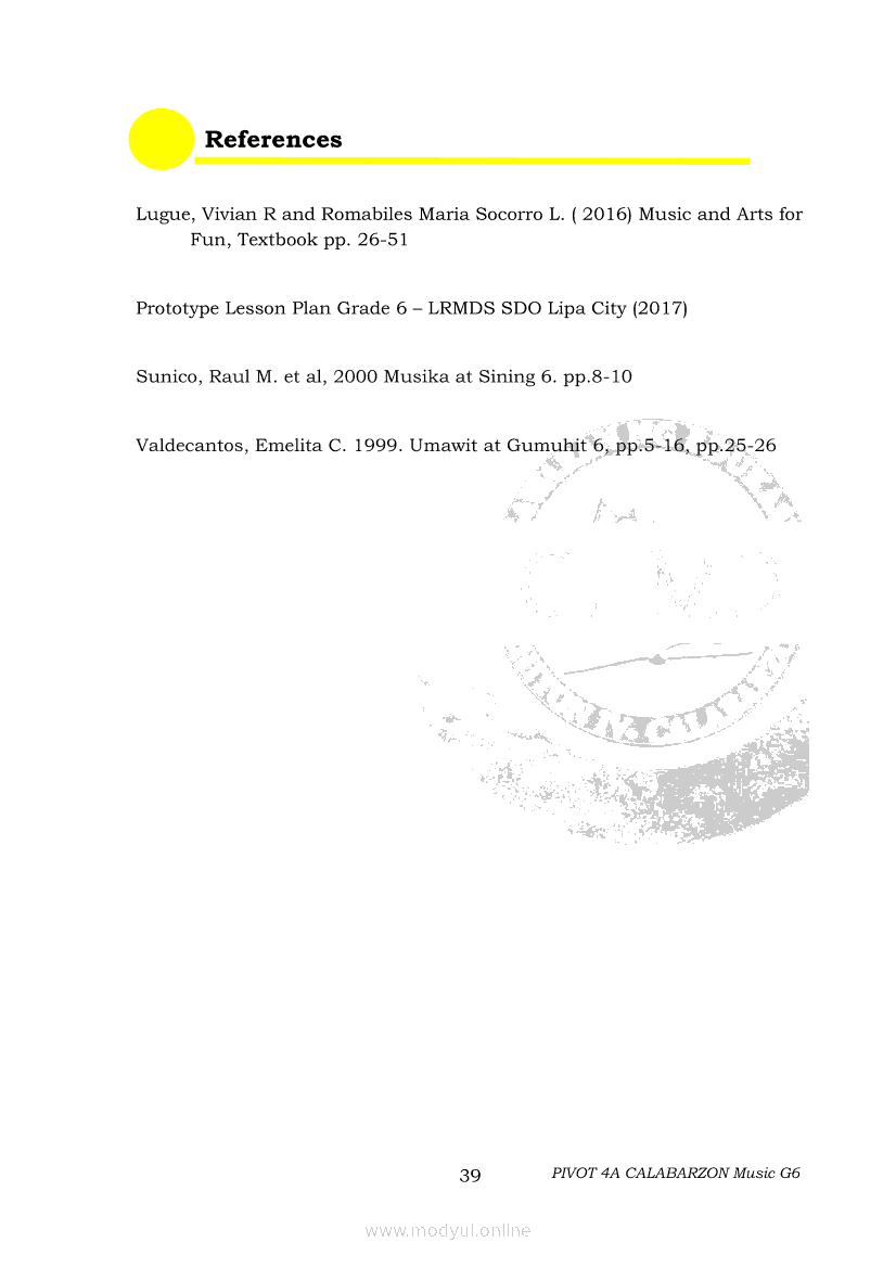 Music 6 Second Quarter Module (PIVOT)Apr 22, 2021 Grade 6Kiumo M901 Tablet for Kids — comprehensive protection in learning, safety, and entertainment for as low as **₱2,399!. Music 6RelatedMUSIC Quarter 4 – Module 4a: Tempo and TextureMUSIC Quarter 4 – Module 4b: Appreciating Music Through Texture and HarmonyMusic 6 Module 1: Rhythm: Notes and RestsMusic 6 Module 2: Rhythm: Differentiate Time SignaturesMusic 6 Module 3: Rhythm: Conduct Time Signatures