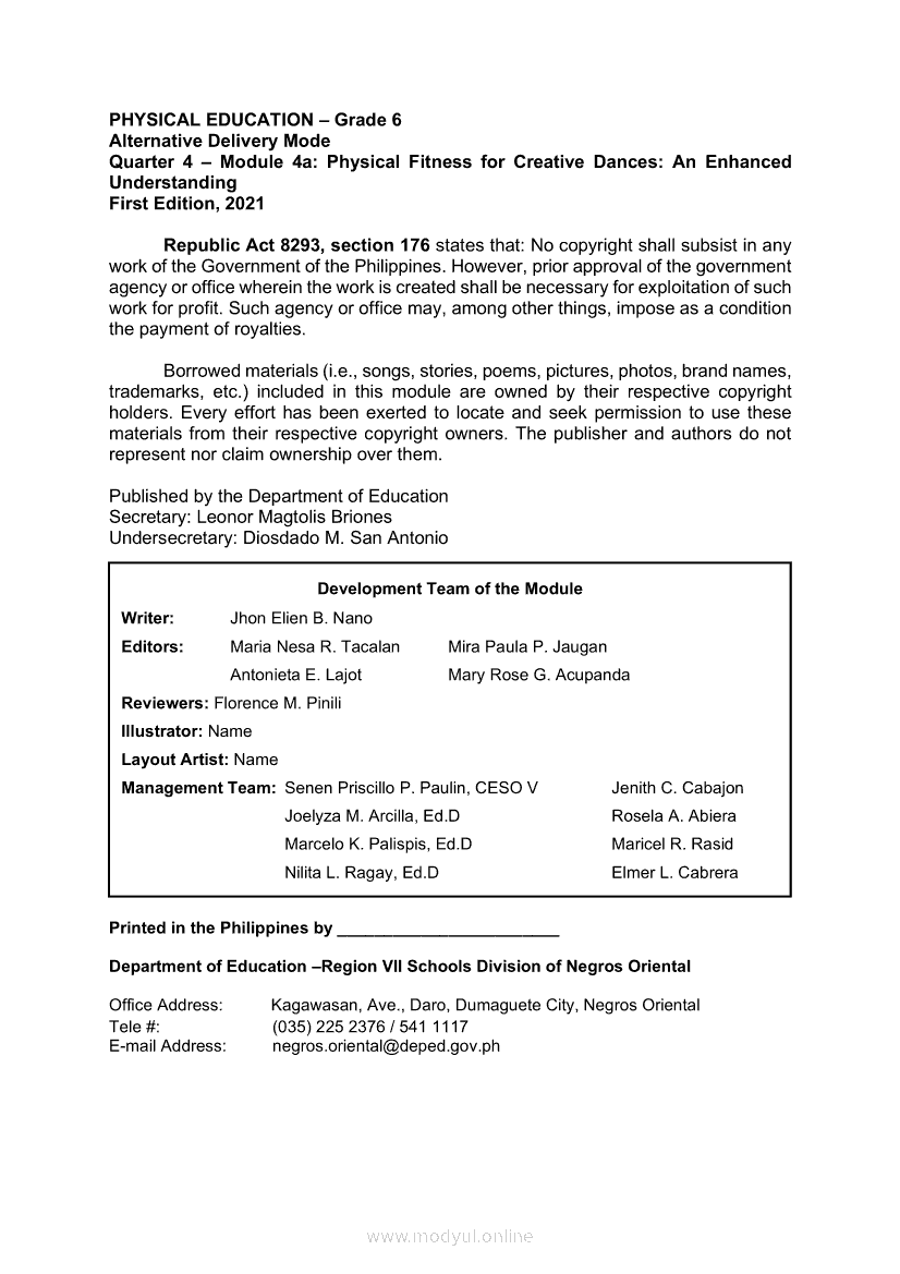 Physical Education Quarter 4 – Module: 4a Physical Fitness for Creative Dances: An Enhanced UnderstandingMay 27, 2021 Grade 6Kiumo M901 Tablet for Kids — comprehensive protection in learning, safety, and entertainment for as low as **₱2,399!. PE 6 4th QuarterRelatedPhysical Education Quarter 4 – Module4b: Creative DancesEdukasyon sa Pagpapakatao Ikaapat na Markahan – Modyul 6: Ang Pananalig sa DiyosEdukasyon sa Pagpapakatao Ikaapat na Markahan – Modyul 7: Positibong Pananaw sa BuhayEPP - ICT Quarter 4 – Module 3: Posts and Shares Materials on Blog in Responsible MannerMUSIC Quarter 4 – Module 4a: Tempo and Texture