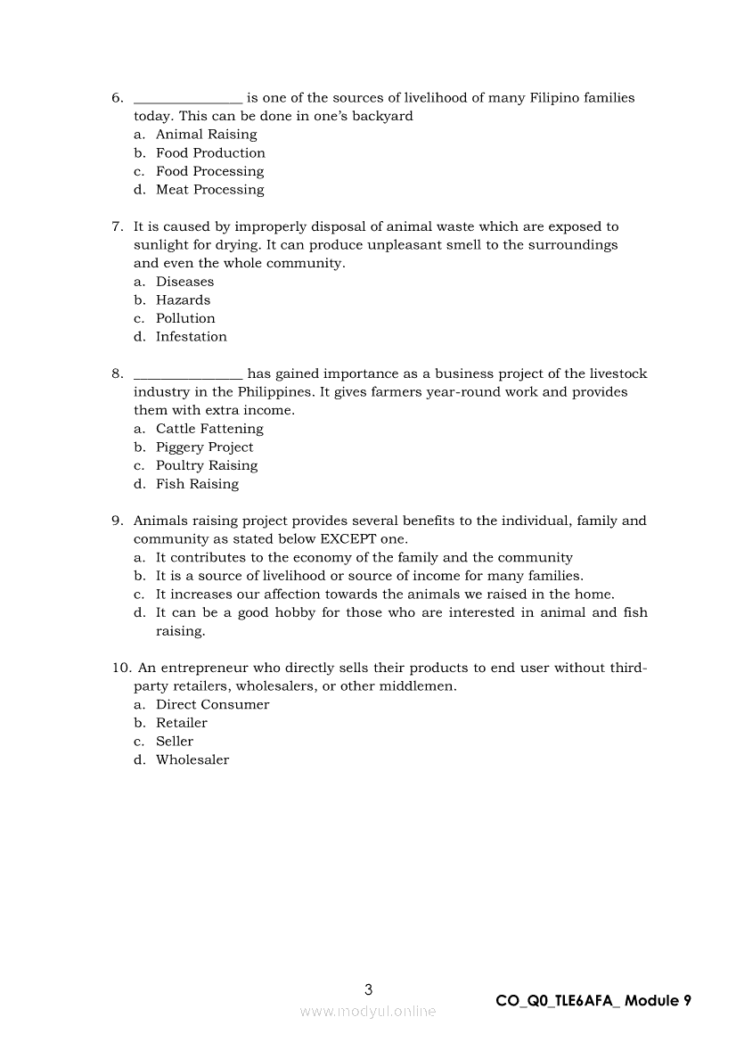 TLE 6 Agri-Fishery Arts Module 9: Animal RaisingApr 22, 2021 Grade 6Kiumo M901 Tablet for Kids — comprehensive protection in learning, safety, and entertainment for as low as **₱2,399!. TLE 6RelatedTLE ICT Quarter 4- Module 7: Audio-Videoconferencing (Communicating Using Audio-Videoconferencing and E-Group)TLE ICT Quarter 4- Module 5: Online Survey Form (Create and Process an Online Survey Form)TLE ICT Quarter 4 - Module 6: Electronic Spreadsheet Tool (Use functions and formulas in an electronic Spreadsheet tool)TLE 6 AgricultureTLE 6 Home Economics Module 1: Family Resources and Needs