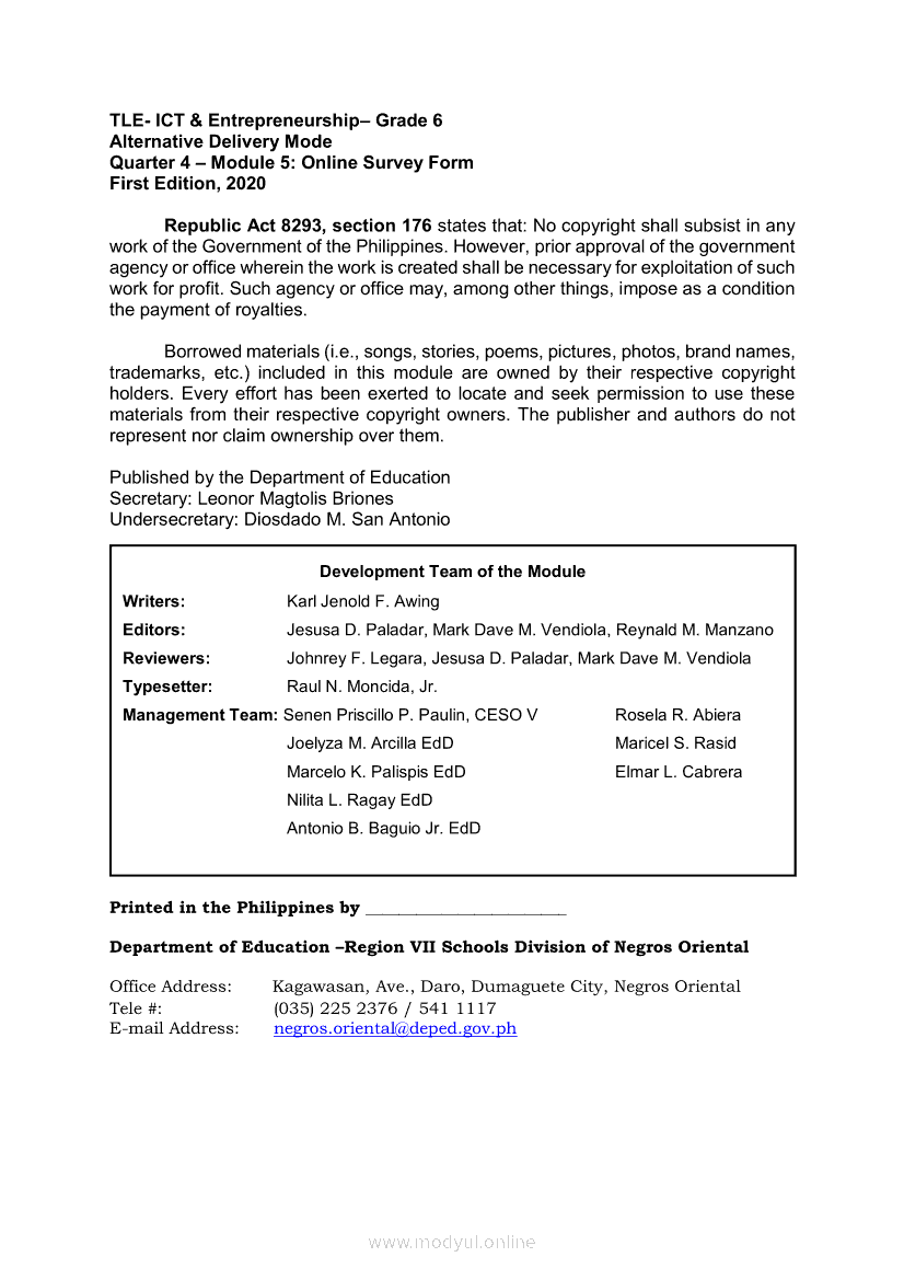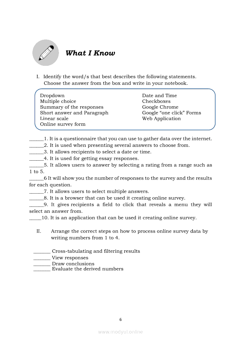 TLE ICT Quarter 4- Module 5: Online Survey Form (Create and Process an Online Survey Form)May 27, 2021 Grade 6Kiumo M901 Tablet for Kids — comprehensive protection in learning, safety, and entertainment for as low as **₱2,399!. TLE 6 4th QuarterRelatedTLE ICT Quarter 4 - Module 6: Electronic Spreadsheet Tool (Use functions and formulas in an electronic Spreadsheet tool)TLE ICT Quarter 4- Module 7: Audio-Videoconferencing (Communicating Using Audio-Videoconferencing and E-Group)Edukasyon sa Pagpapakatao Ikaapat na Markahan – Modyul 4: Patunay ng Pananalig sa DiyosTHE EFFECTS OF EARTHQUAKES AND VOLCANIC ERUPTIONS for Science Grade 6 Quarter 4/ Week 1EPP- ICT Quarter 4 – Module 2: Posts and Shares Materials on Wiki in Responsible Manner